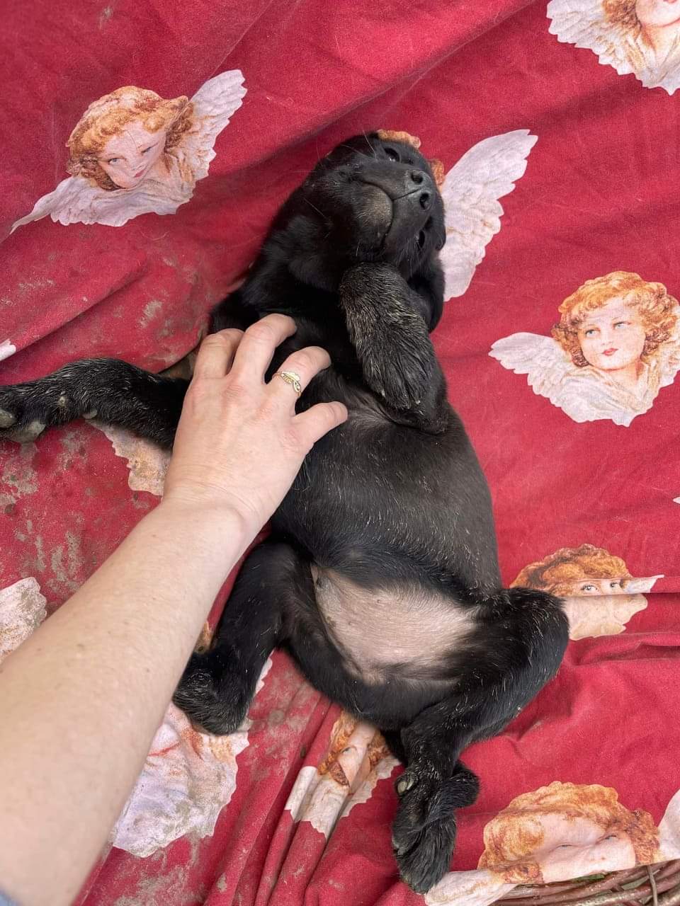 Onix est l’un des chiots d’Elsa. Elsa a été abandonnée au milieu de nulle part alors qu’elle attendait ses petits, et a dû leur donner naissance comme elle pouvait, toute seule en se cachant dans les buissons. N’étant pas la bienvenue là-bas, des bénévoles ont contacté le refuge pour la prendre en charge elle et ses petits.