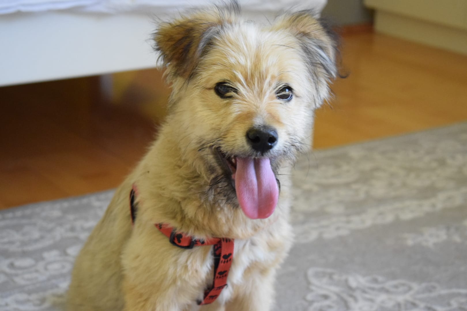 Laetitia a été postée sur un site internet avec une chaîne autour du cou, un collègue secouriste a vu le post et l’a récupéré pour qu’elle ne vive pas toute sa vie enchaînée.
