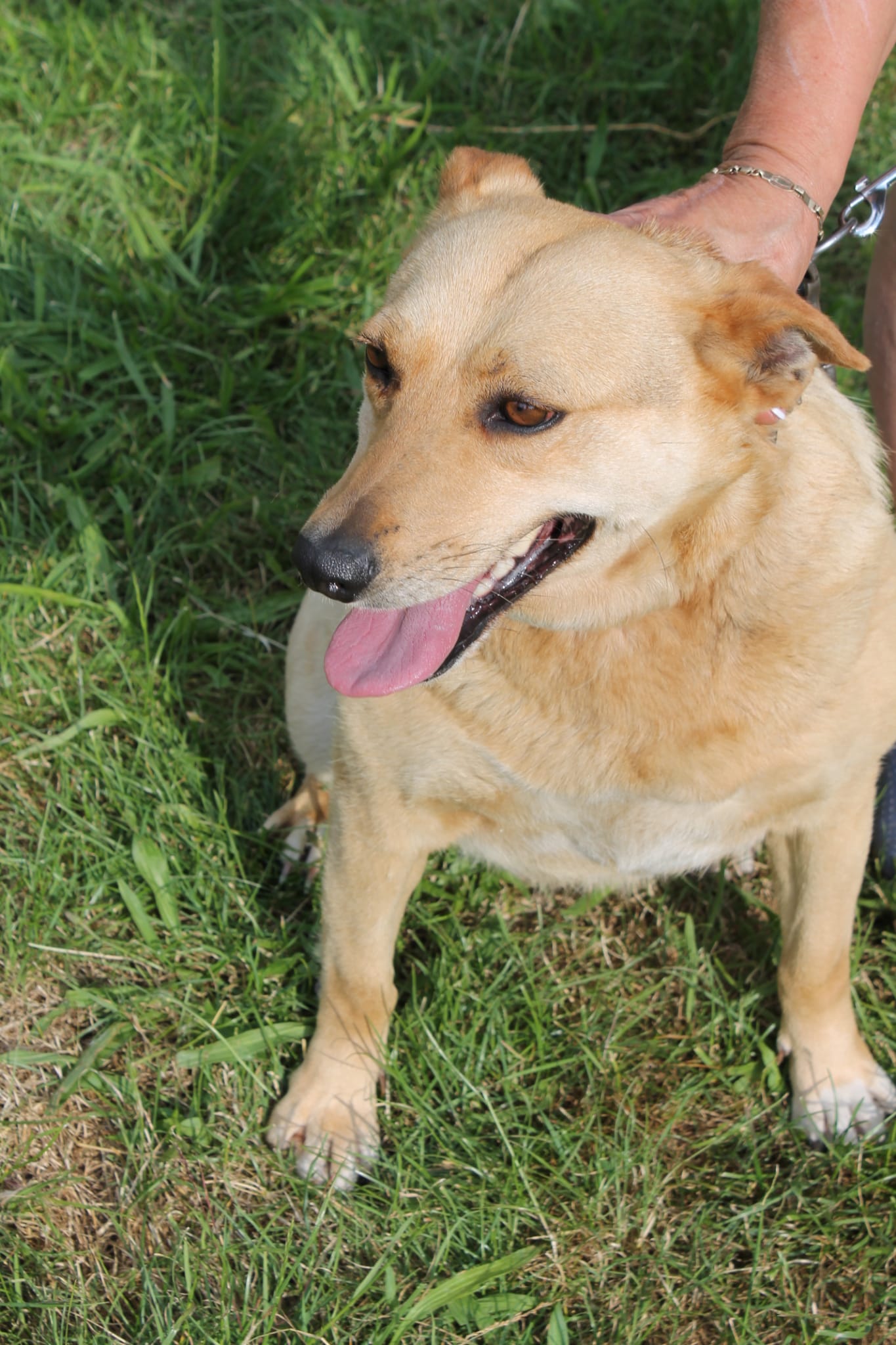 Recueillie sur place puis adoptée, la famille qui l’avait accueillie ne peux plus la garder. Très amicale et joueuse, elle s’attache rapidement aux humains qui prennent soin d’elle. Câline, elle aime également faire la fête, mais du à son léger surpoids actuel, nous déconseillerions tout foyer avec des enfants en bas-âge.