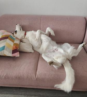 C’est un chien adorable, très sociable et en même temps d’une douceur extrême. Il adore les enfants et les adolescents, cependant, il a un traumatisme envers les jeunes hommes minces en survêtement, il leur aboie dessus de loin. Il reste un loulou très câlin et proche de l’homme qui sait vivre dans un foyer, il ne détruit pas et supporte bien la solitude. Il a un petit problème à l’œil qui ne le dérange pas et il n’en souffre pas.