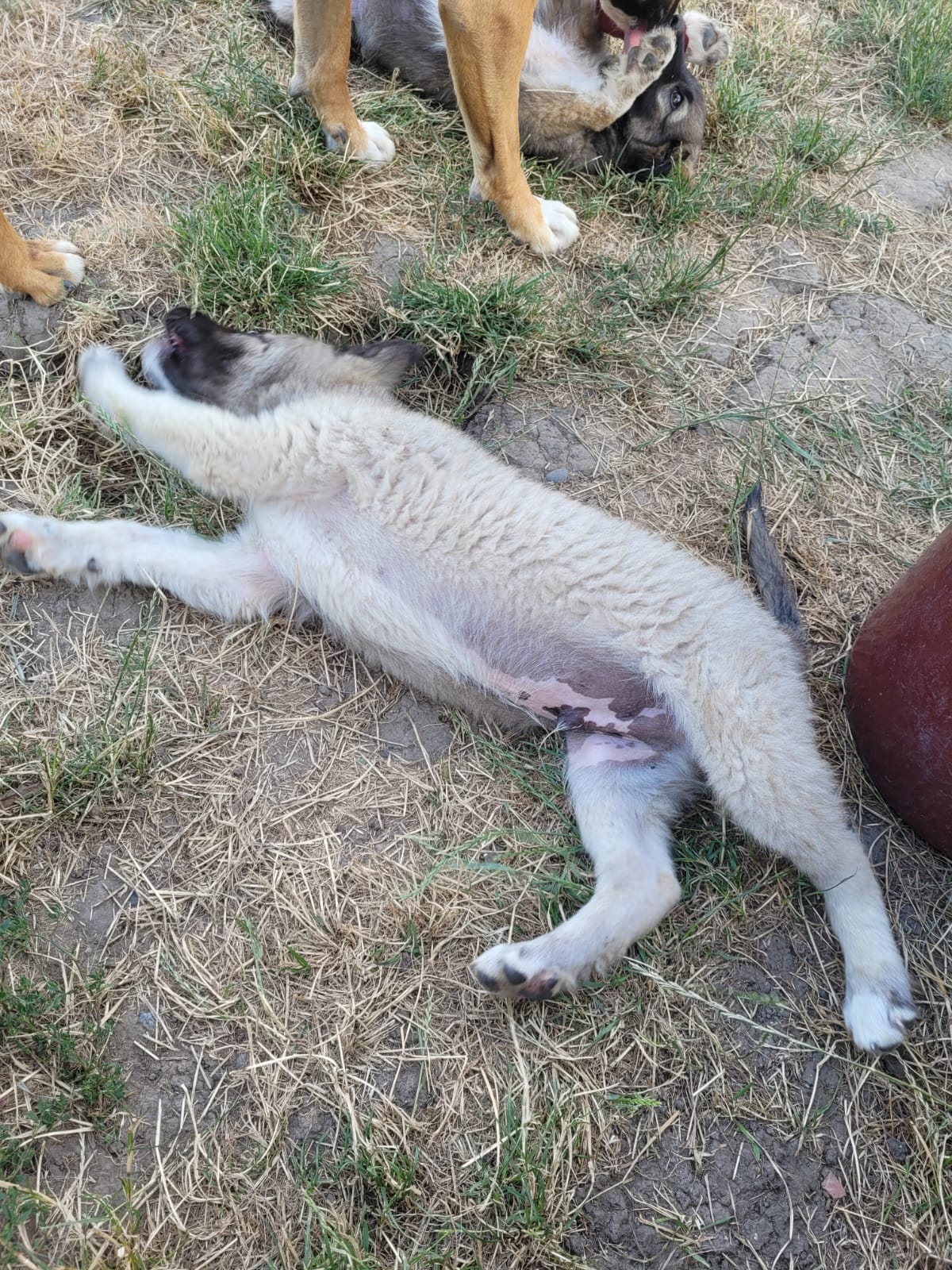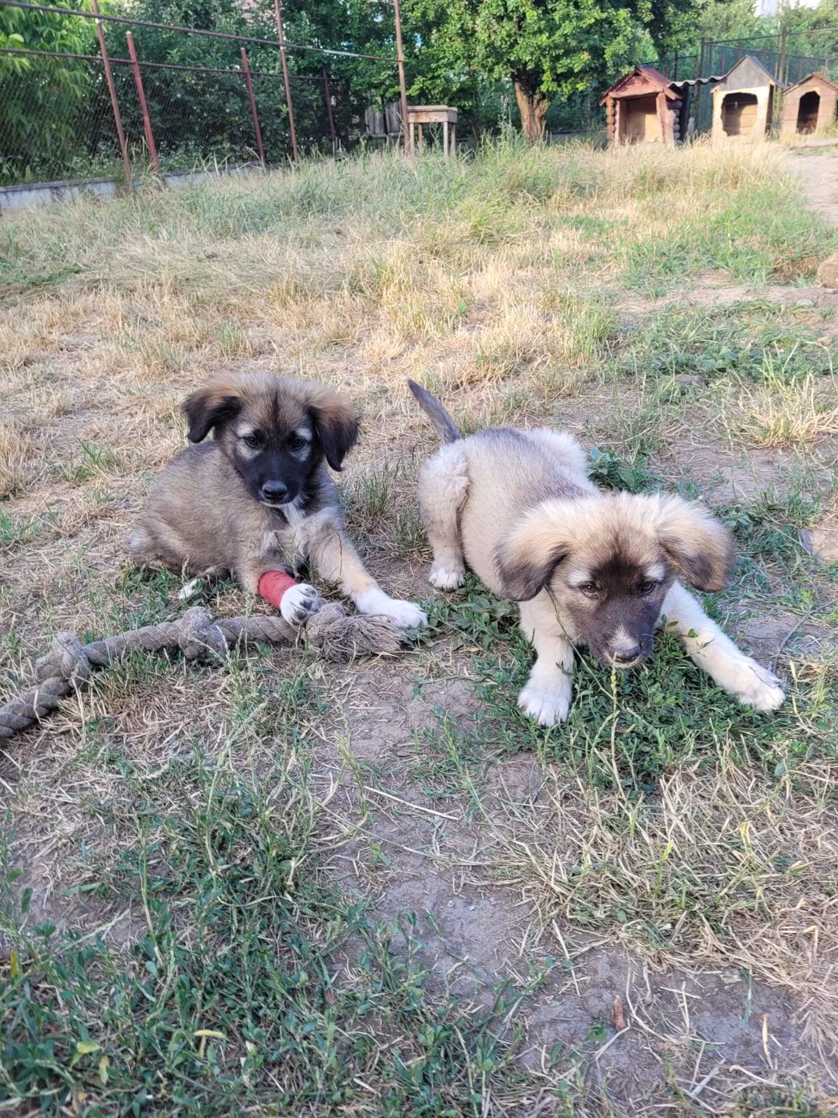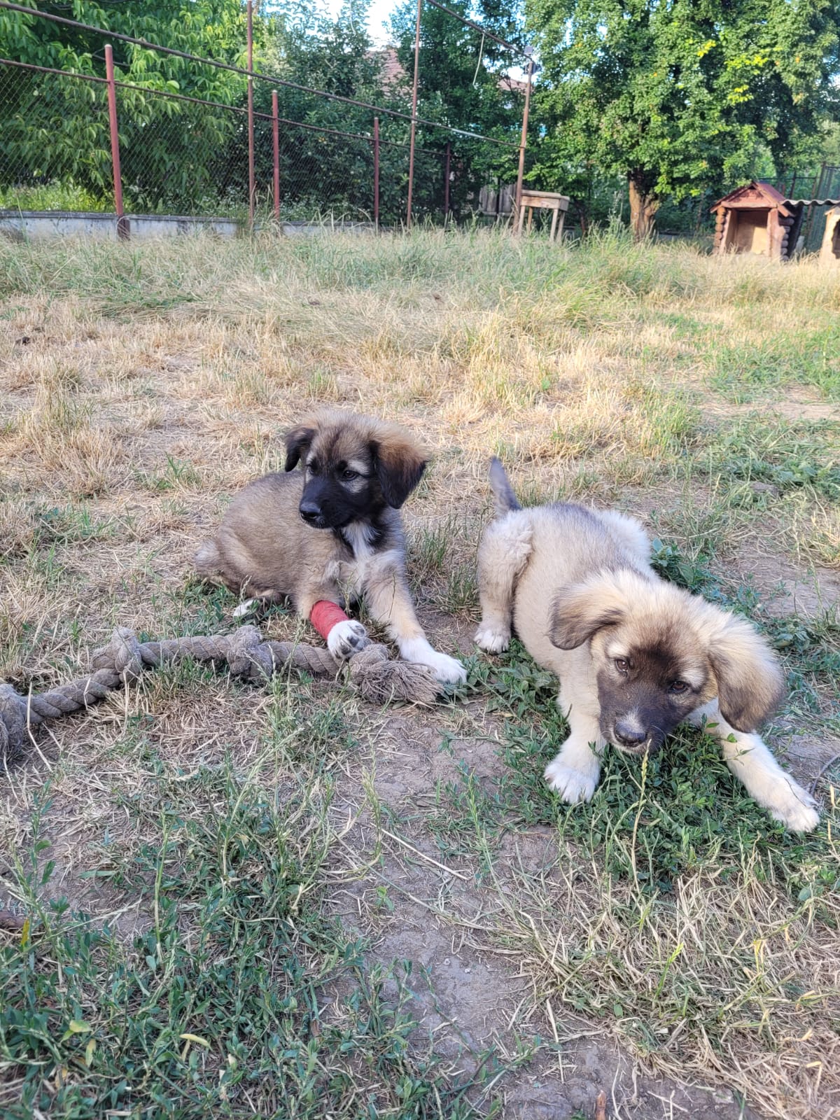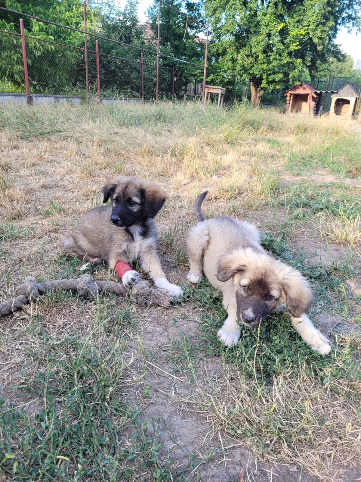 Ils ont porté des attelles pendant quelques semaines. La jambe de Lupo a très bien guéri, il a eu la fracture la plus facile, son frère porte toujours l’attelle car sa jambe n’a pas guéri de la même façon.