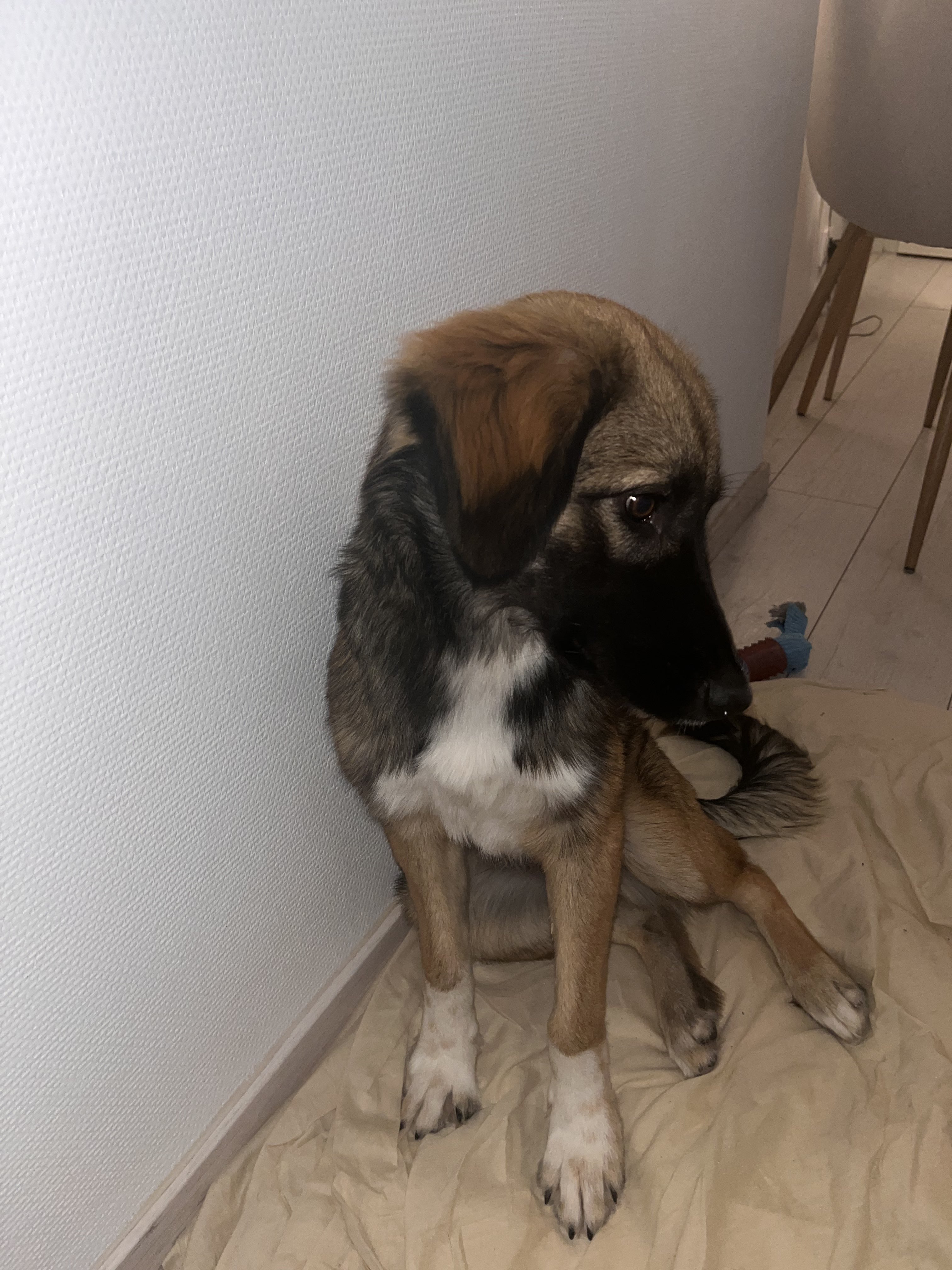Pour vous la faire courte, j’ai été abandonné dans les rues de Roumanie, on m’a retrouvé près d’une rivière, où je venais de me faire tirer dessus par un fusil à plomb. Résultat, une patte facturée, et de nombreux soins chez le monsieur en blouse blanche, je crois que ça s’appelle un vétérinaire. Aujourd’hui, je garde une légère boiterie.