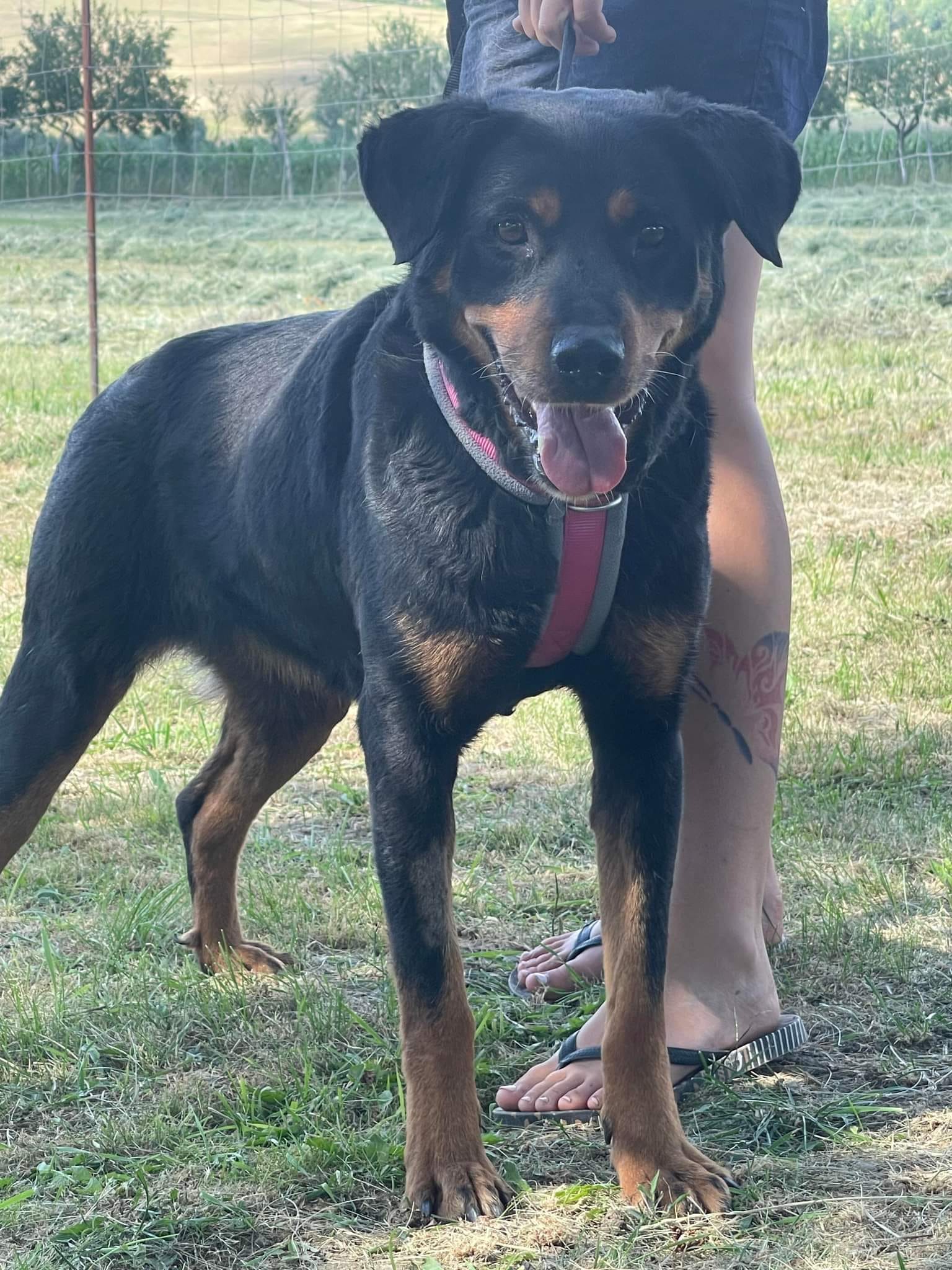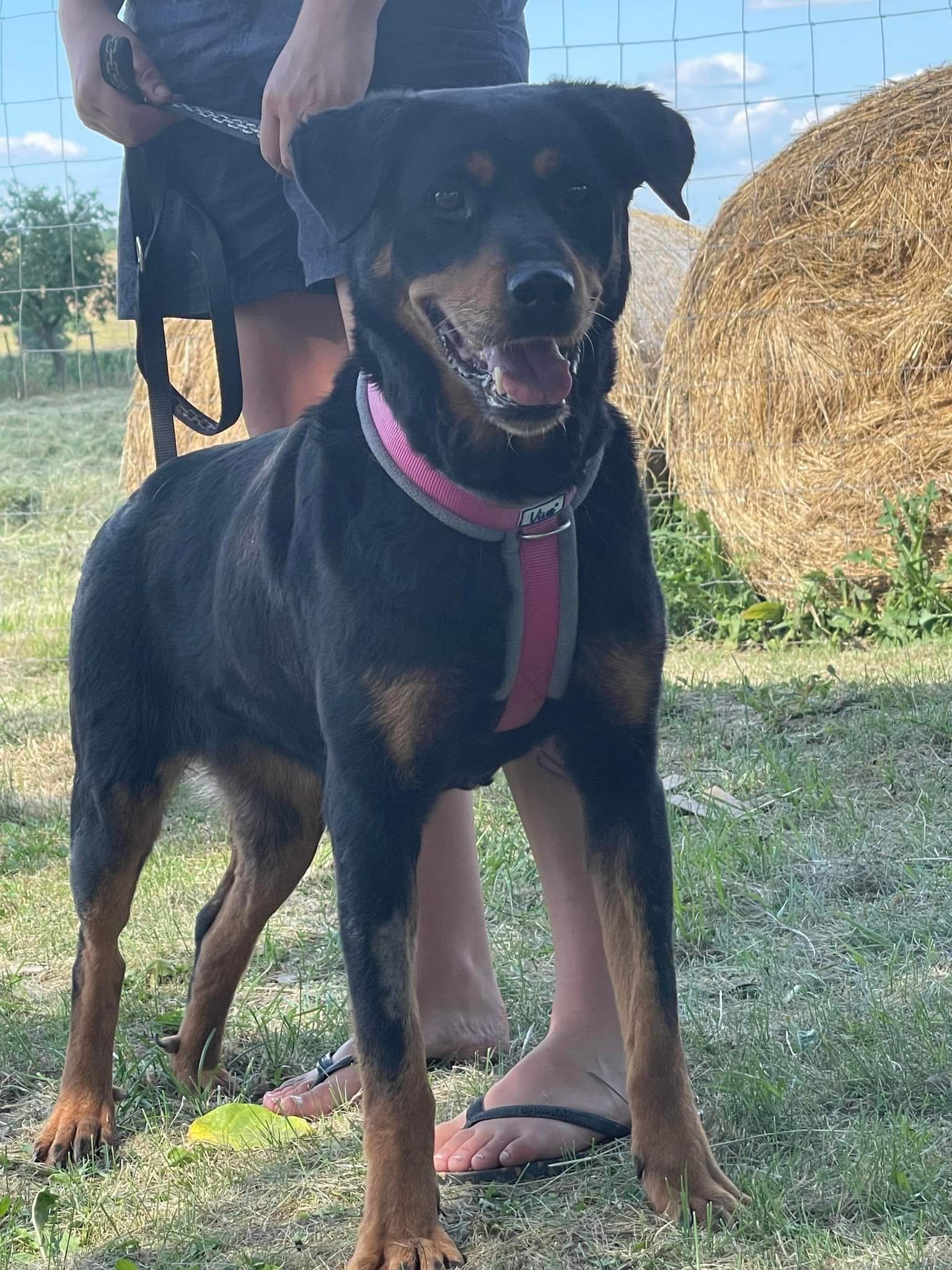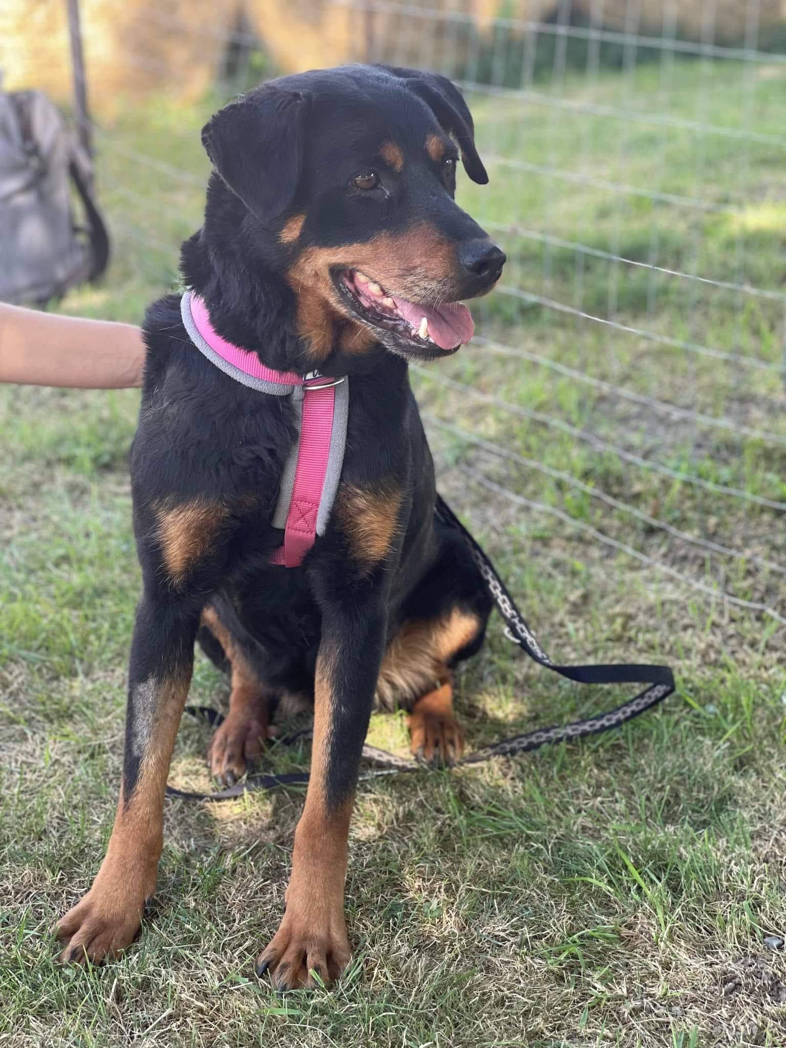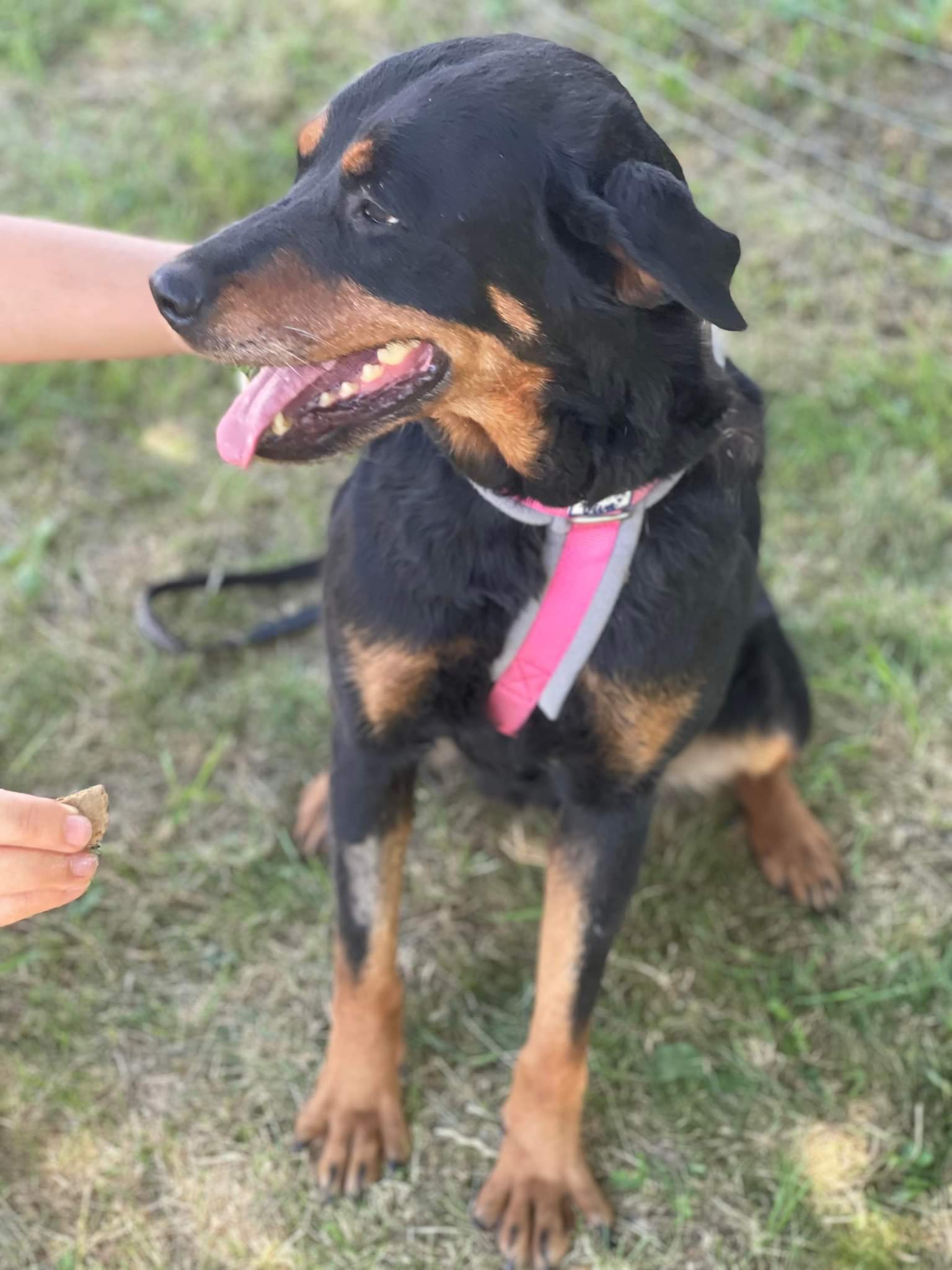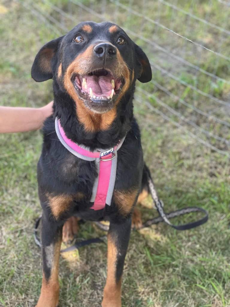 Rita a été trouvée dans la rue, mendiant de la nourriture. Elle portait une marque sur son cou, elle a surement été maintenue longtemps à l’aide d’une chaîne trop serrée.