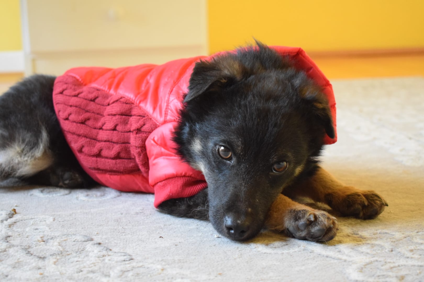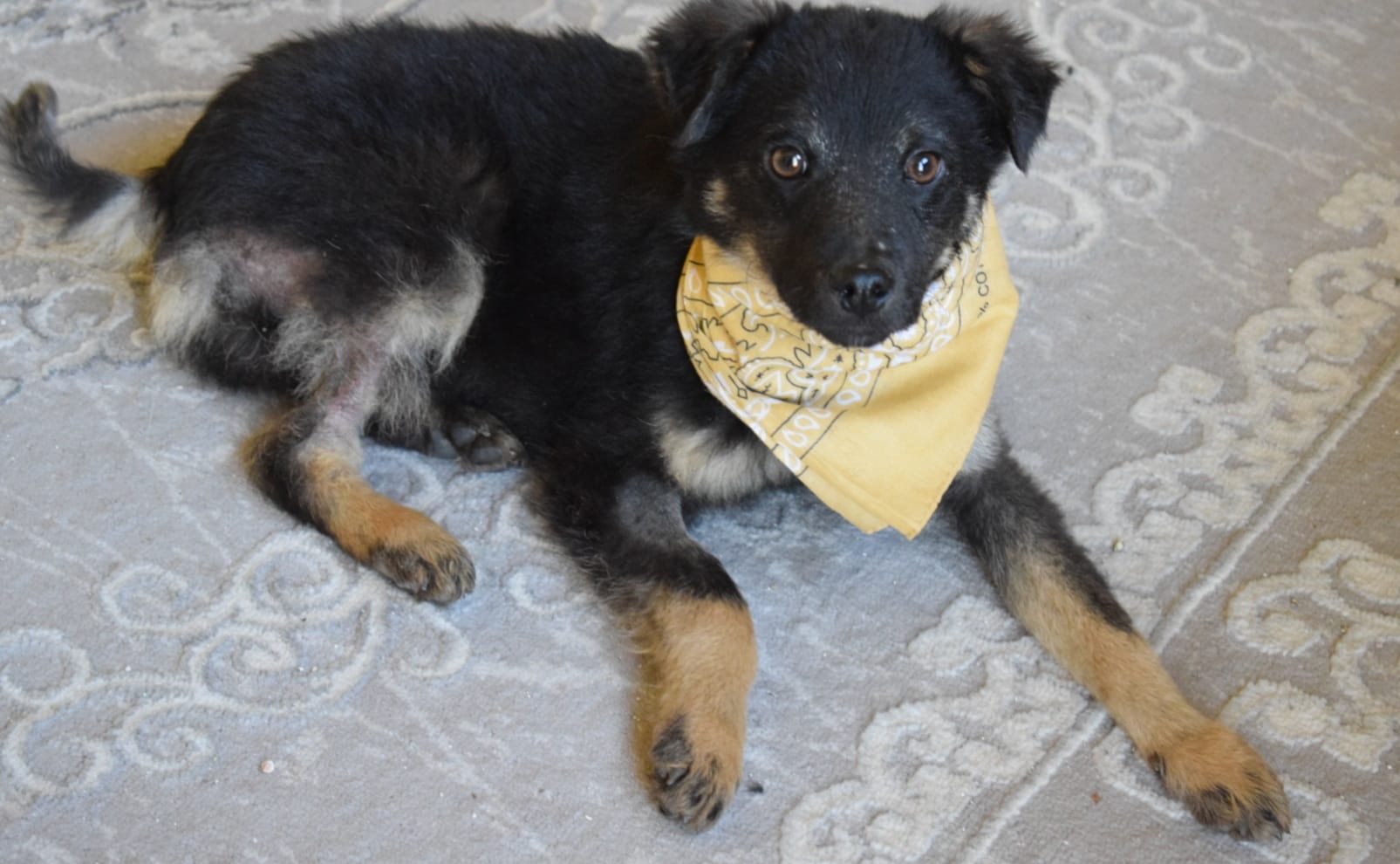 Ce petit bout a été trouvé dans un piteux état, extrêmement maigre, il était rempli de marque de maltraitance avec de la fourrure en moins un peu partout sur le corps. Il avait également 2 fractures à la patte gauche, peut-être dû à la malnutrition.