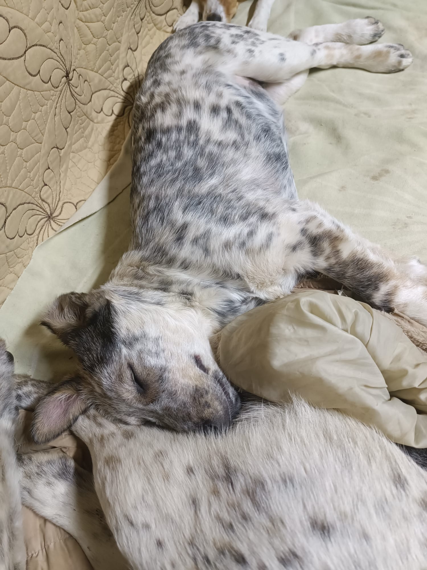 Son histoire est particulièrement compliquée, Leira a été trouvée enfermée avec ses huit frères et sœurs dans une petite pièce sans eau ni nourriture. L’homme qui les garder prisonniers ne voulait pas les confier aux sauveteurs, mais au bout de deux jours, il accepta. Il était déjà trop tard pour deux chiots dus à la malnutrition… Une semaine après, deux autres sont également décédés, leur corps été trop faible. Leira est donc une survivante, elle cherche désormais une famille qui saura prendre soin d’elle et lui offrir la vie qu’elle mérite.
