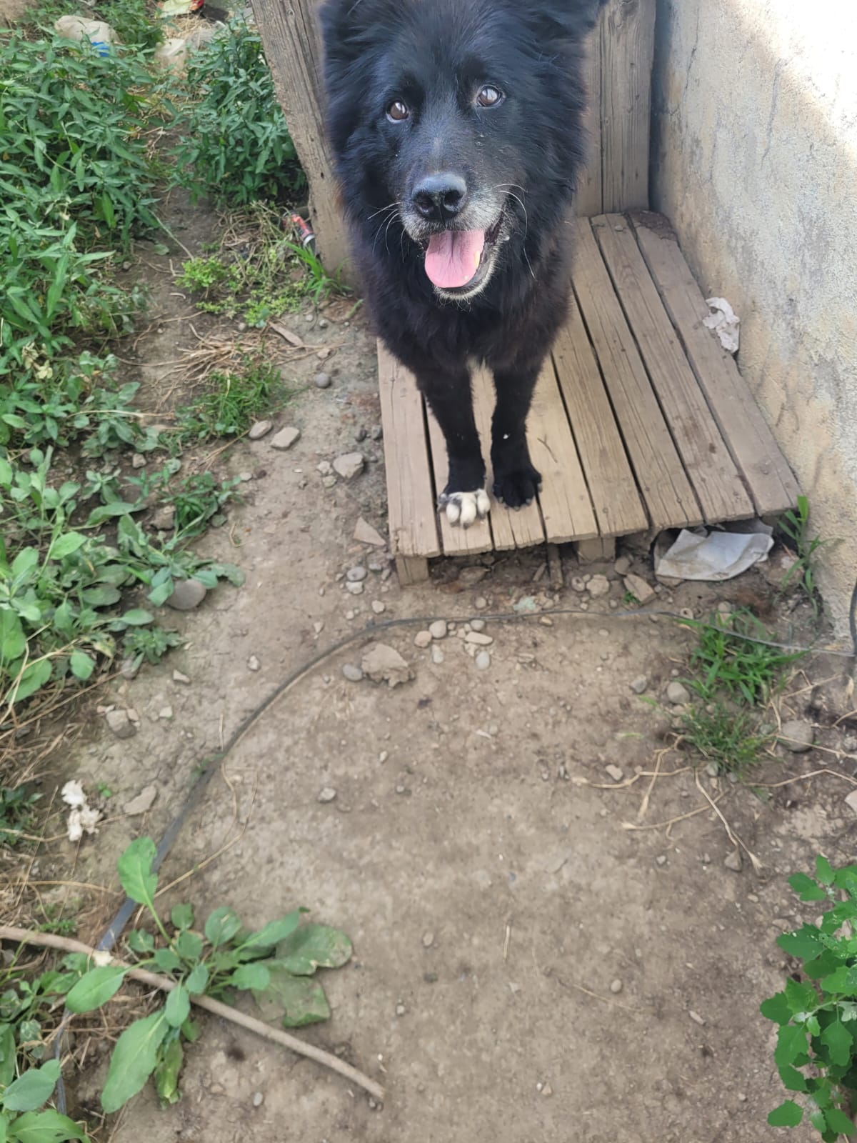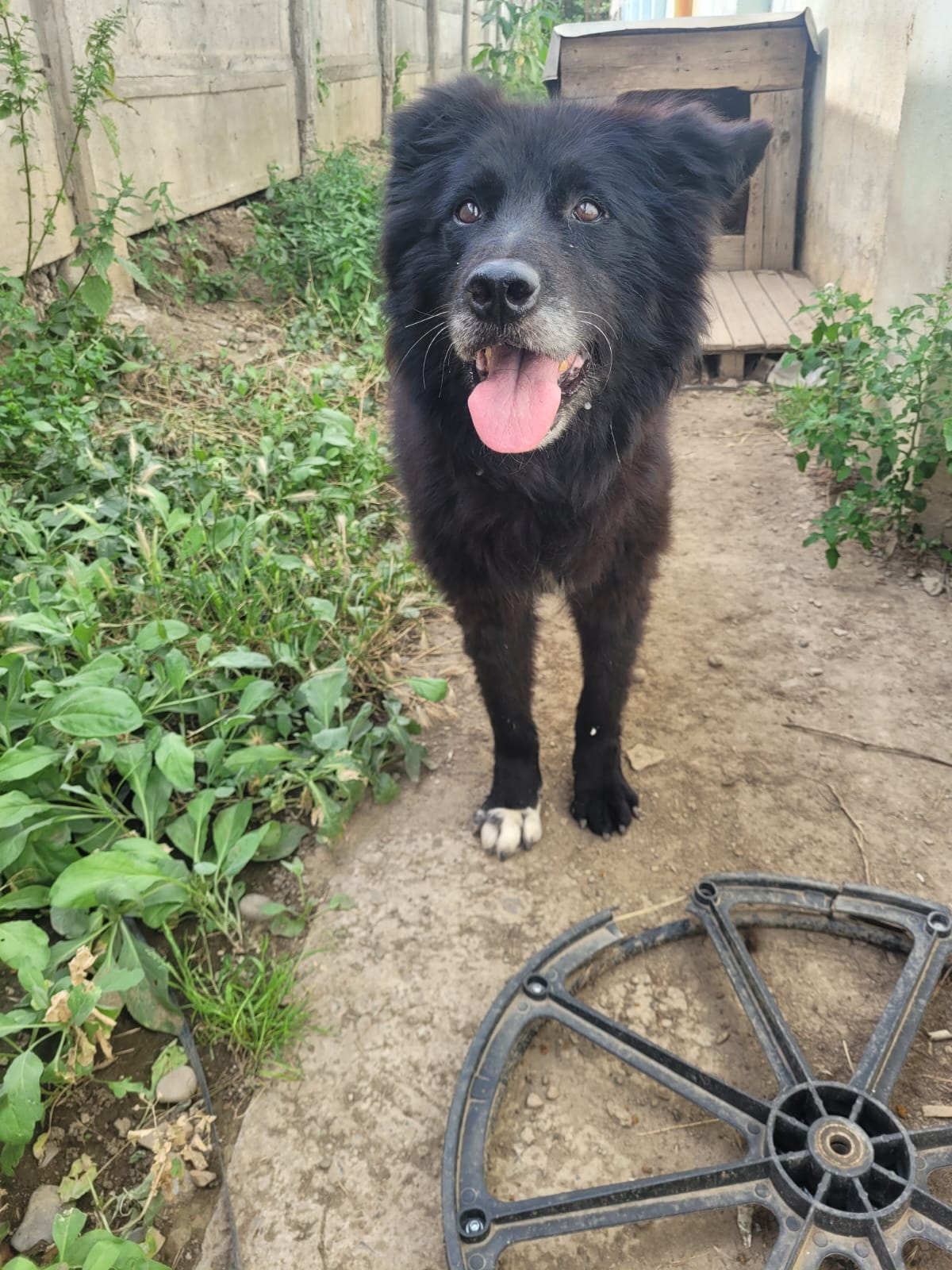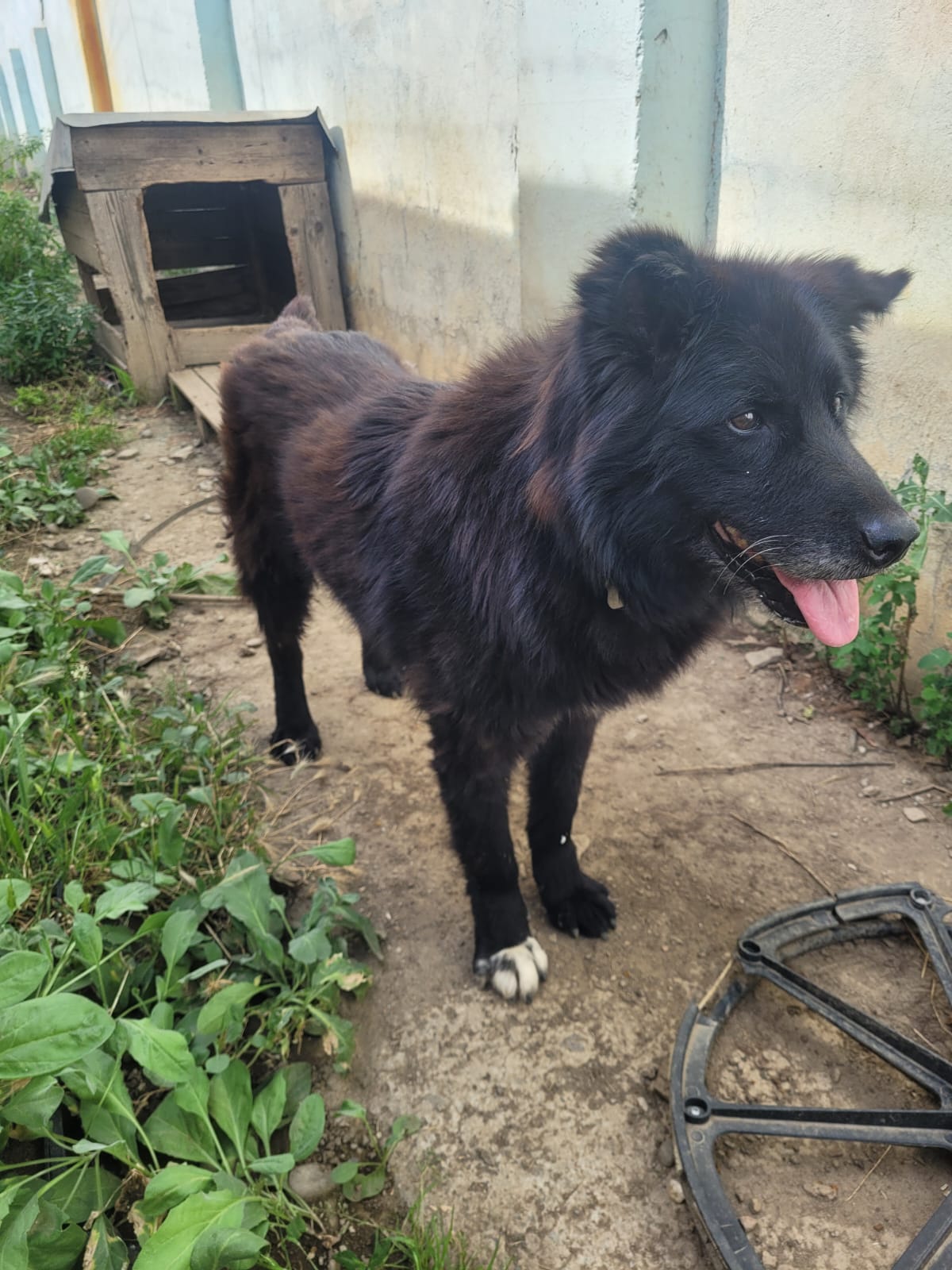 Elle est actuellement dans un chenil en extérieur. Elle est incontinente, et une de ses oreilles a été coupée… Il est aujourd’hui temps qu’elle puisse profiter de ses derniers instants. Elle n’en veut pas pour autant à l’humain, elle est toujours heureuse de voir un bipède, et lui fait la fête. Elle est proche des humains.