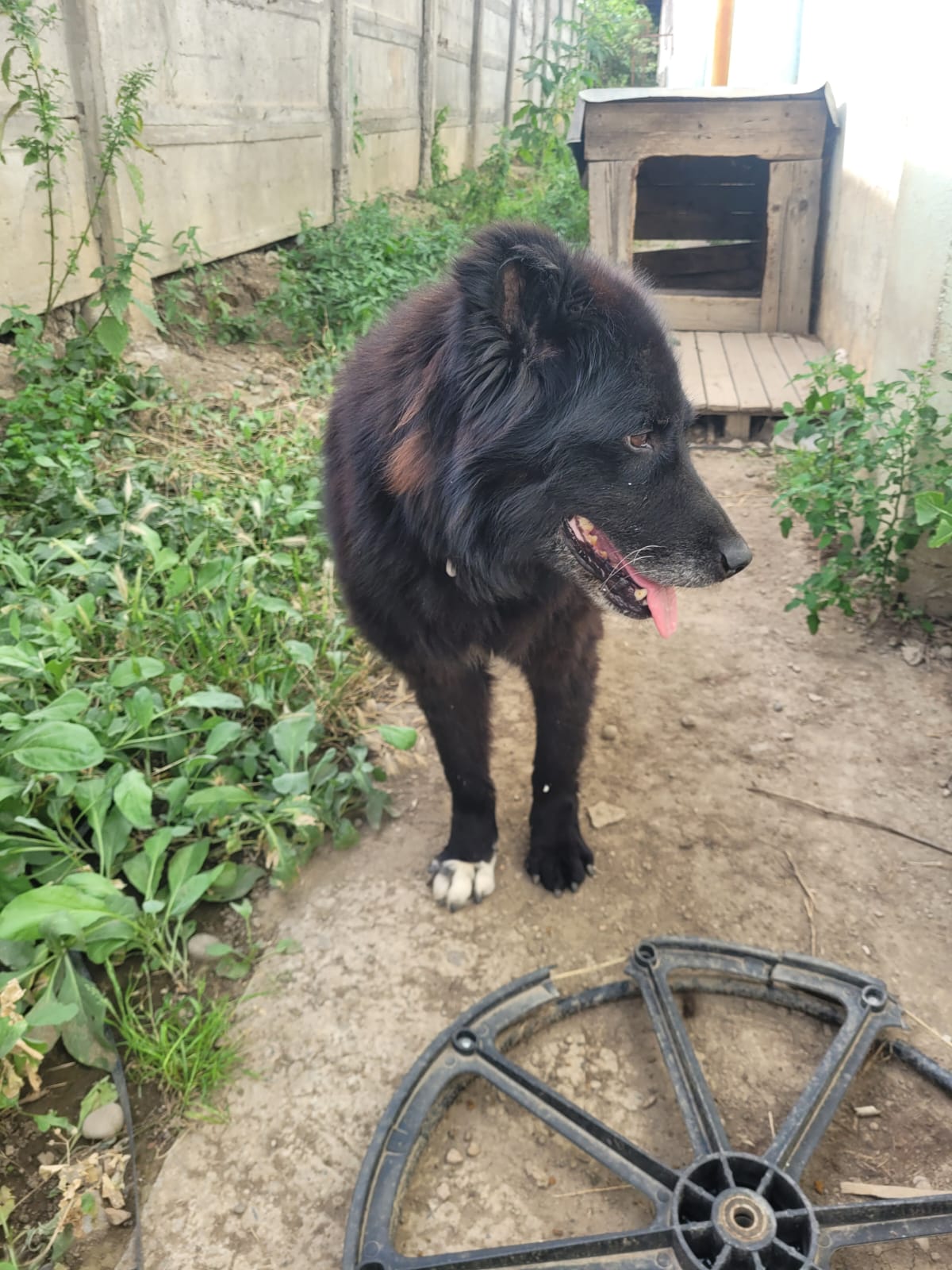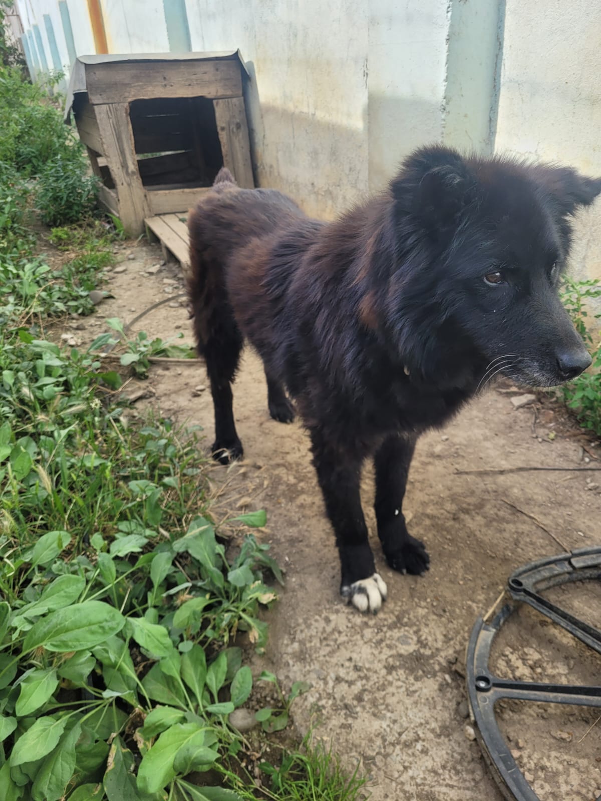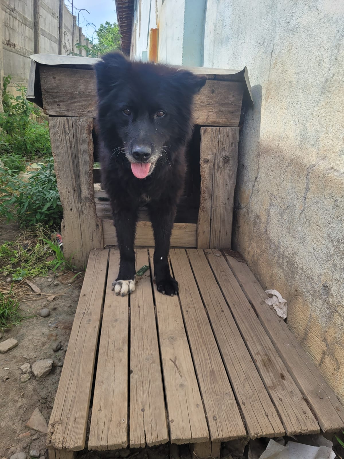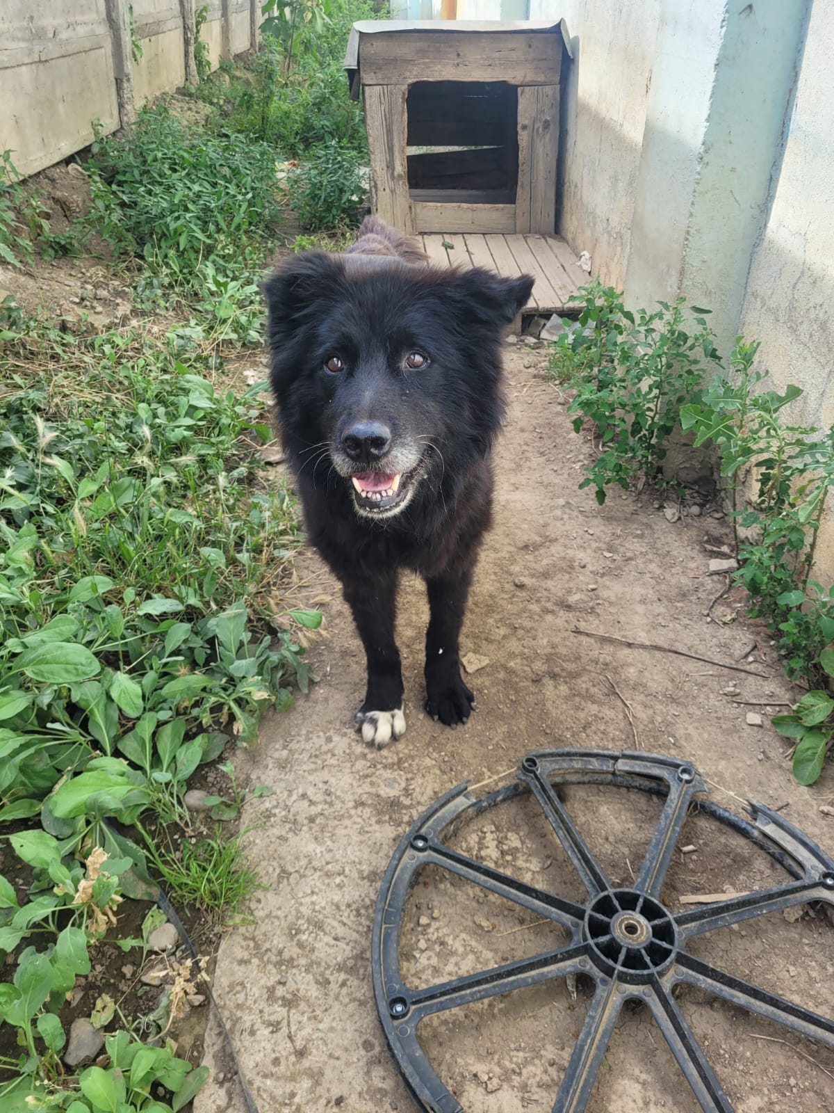 Elle est actuellement dans un chenil en extérieur. Elle est incontinente, et une de ses oreilles a été coupée… Il est aujourd’hui temps qu’elle puisse profiter de ses derniers instants. Elle n’en veut pas pour autant à l’humain, elle est toujours heureuse de voir un bipède, et lui fait la fête. Elle est proche des humains.