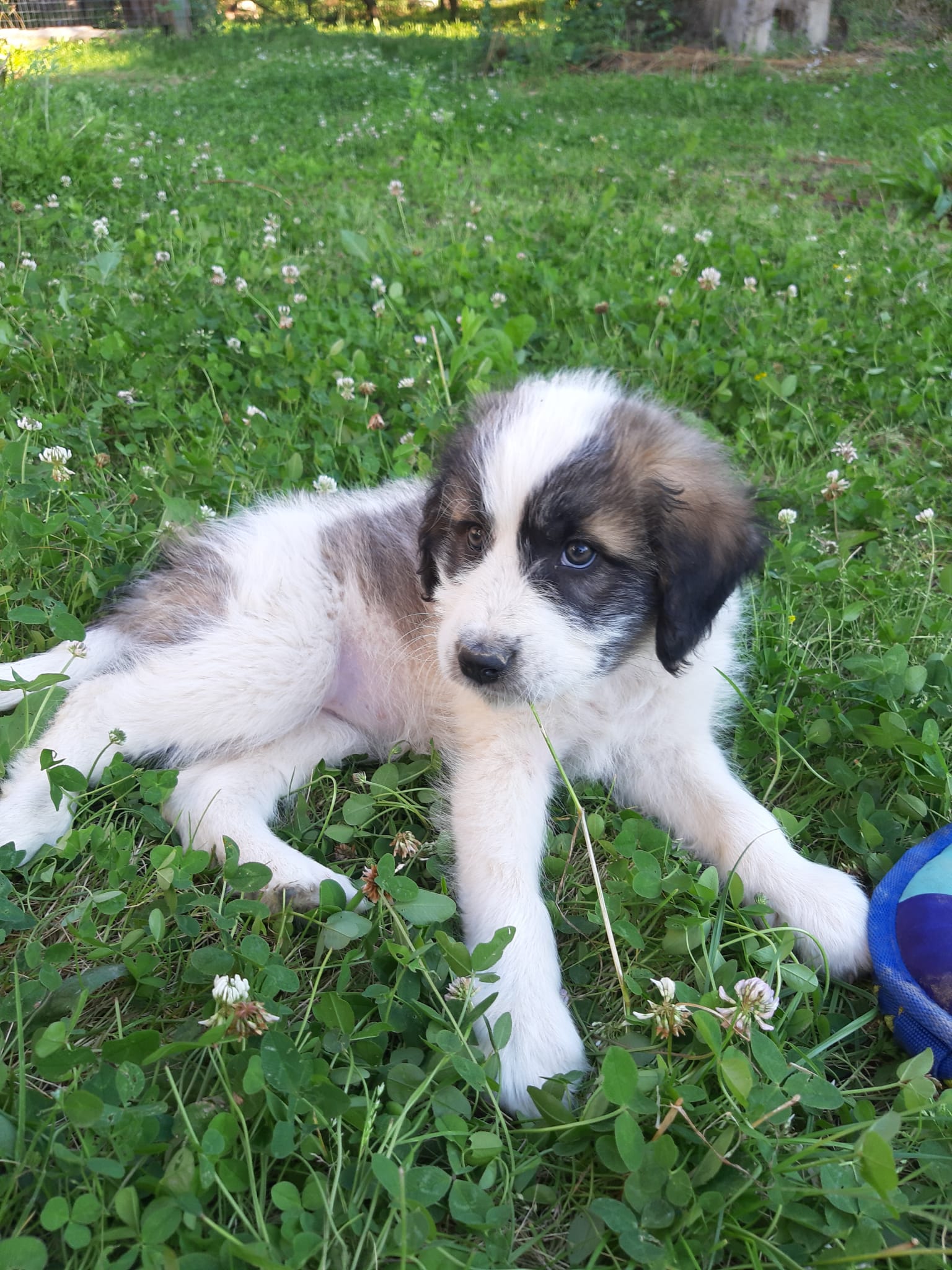 Belle est amicale, douce et amusante. Elle aime jouer avec son frère et ses parents d’accueil. Elle est affectueuse, adore les câlins et passer du temps avec les gens. Elle est curieuse et aime explorer. Nous pensons qu’elle sera un gros chien à l’âge adulte, environ 55 – 60 cm de hauteur d’épaule.