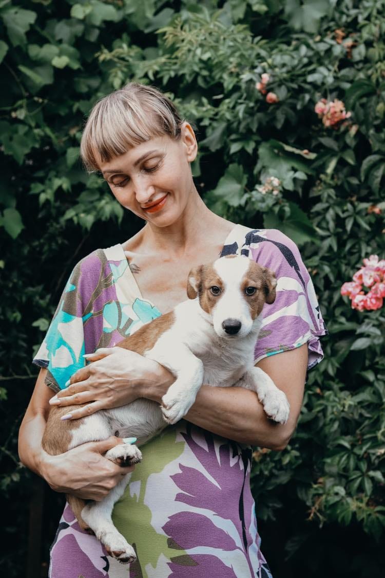 Trouvé sur le bord de la route, abandonnée, seule, elle avait environ 3 semaines. Une cycliste l’a trouvée et a confié le chiot à une famille d’accueil, elle a été nourrie au biberon. Elle a grandi en compagnie d’autres chiens et de quelques chats.
