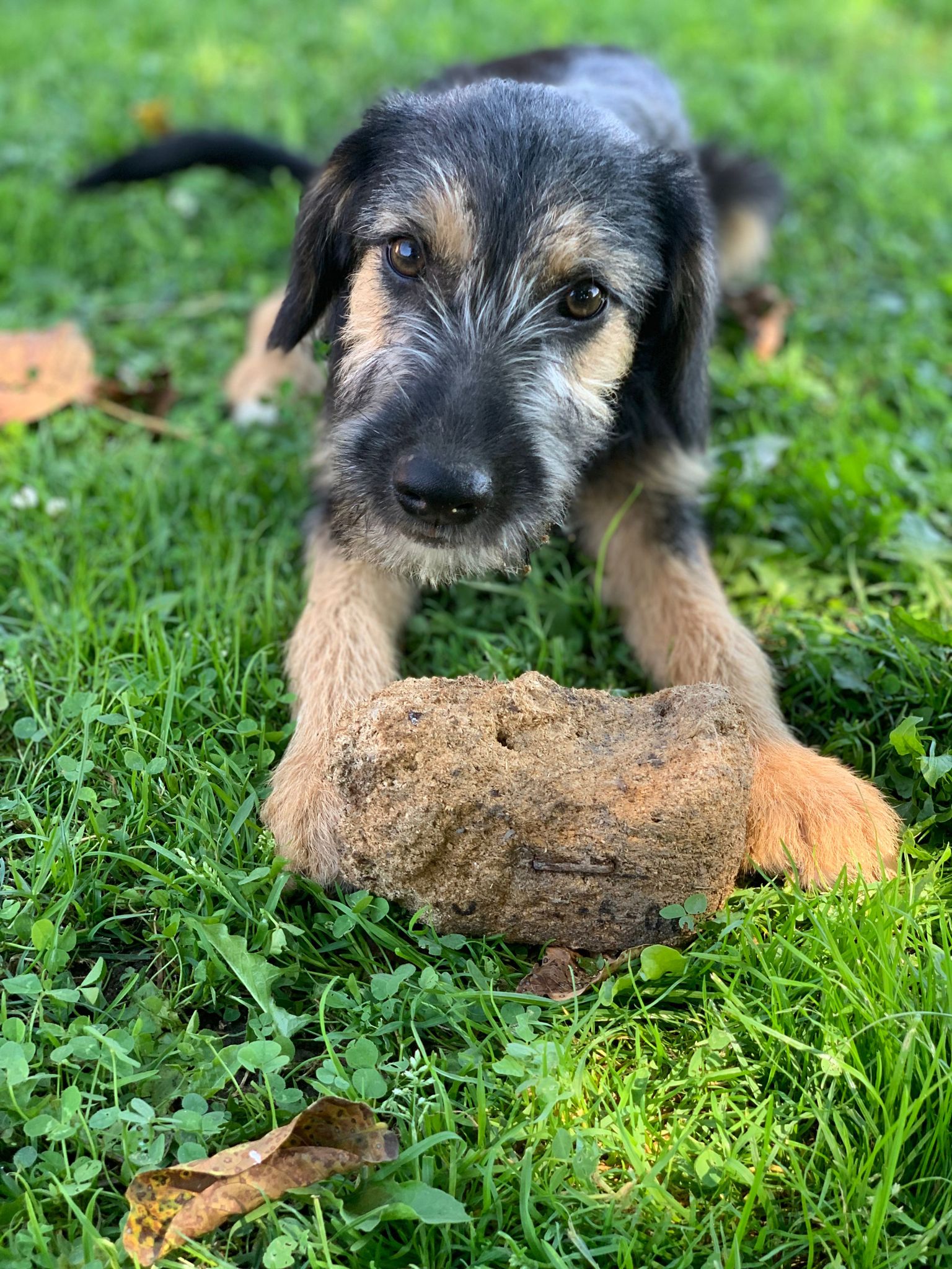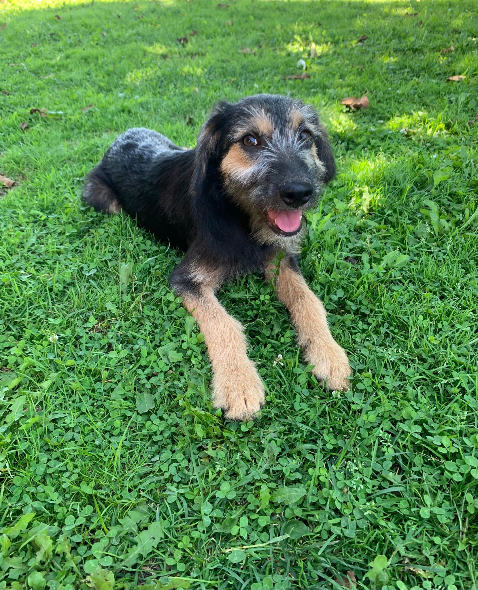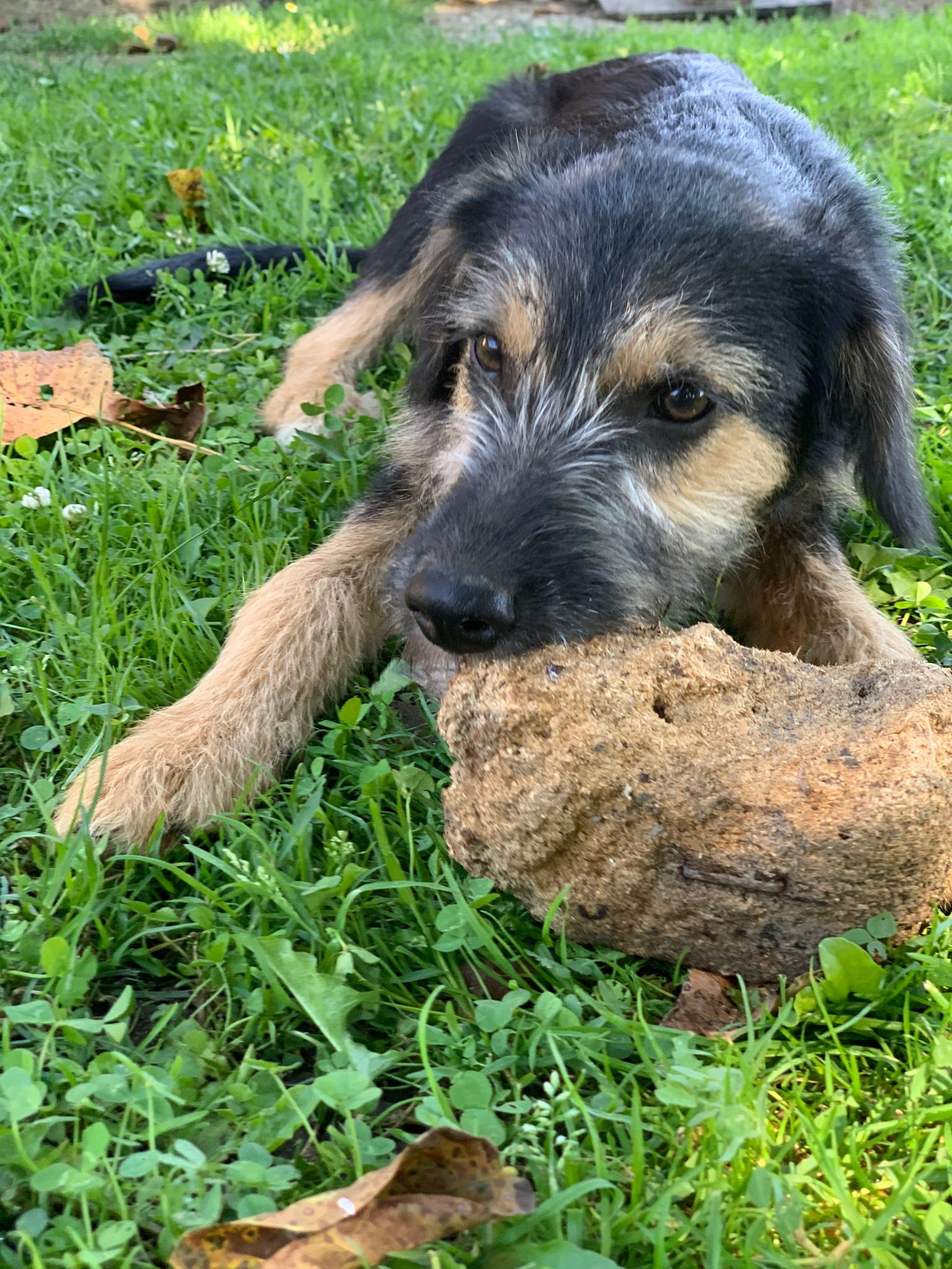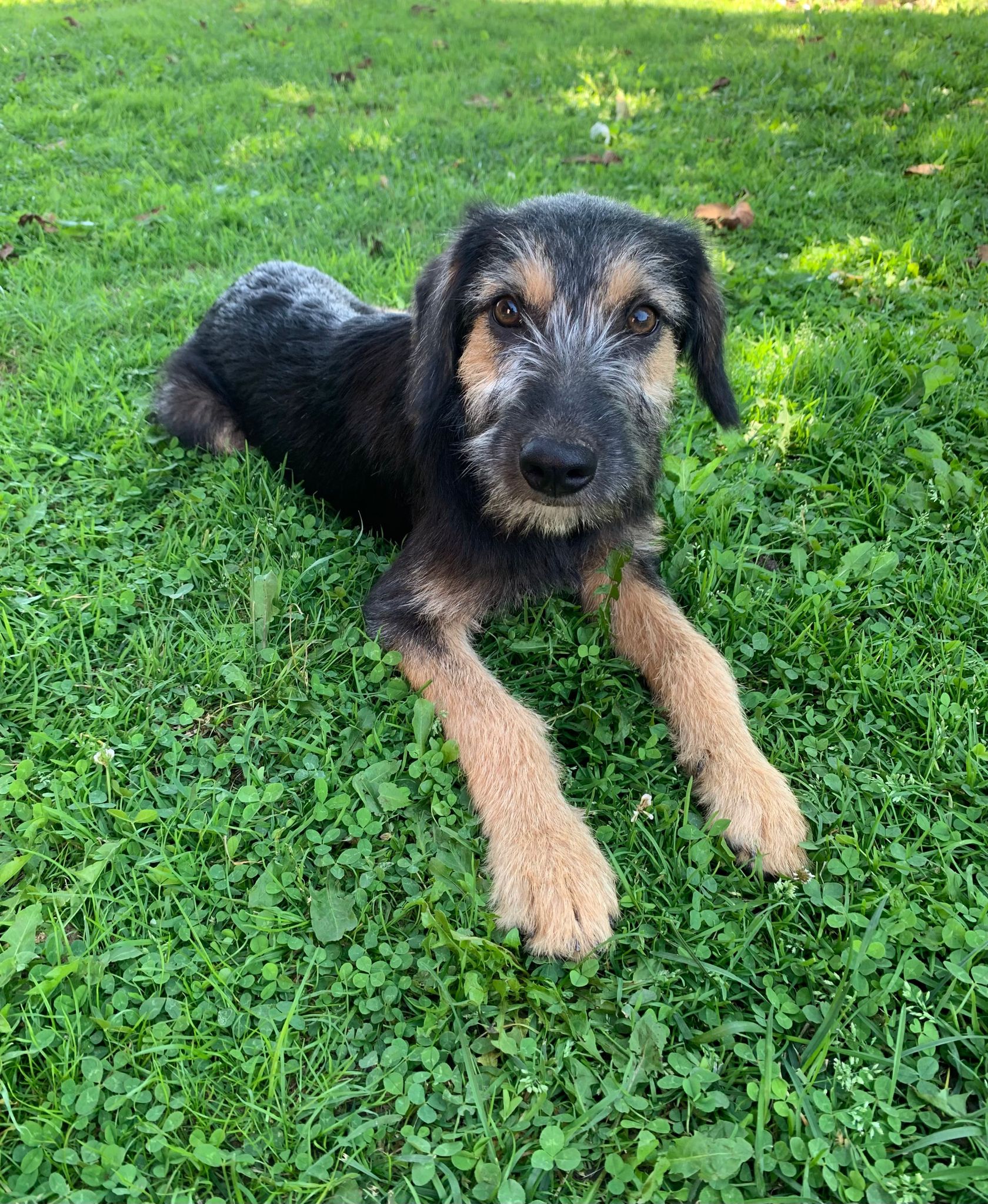 Letty nous est venue d’un camp gitan, nous avons réussi à les convaincre de nous laisser stériliser sa maman. Ils voulaient garder sa maman, qui est un chien de taille moyenne, de père inconnu. Letty pèse à 4 mois 8 kg, elle sera probablement une chienne de taille moyenne.