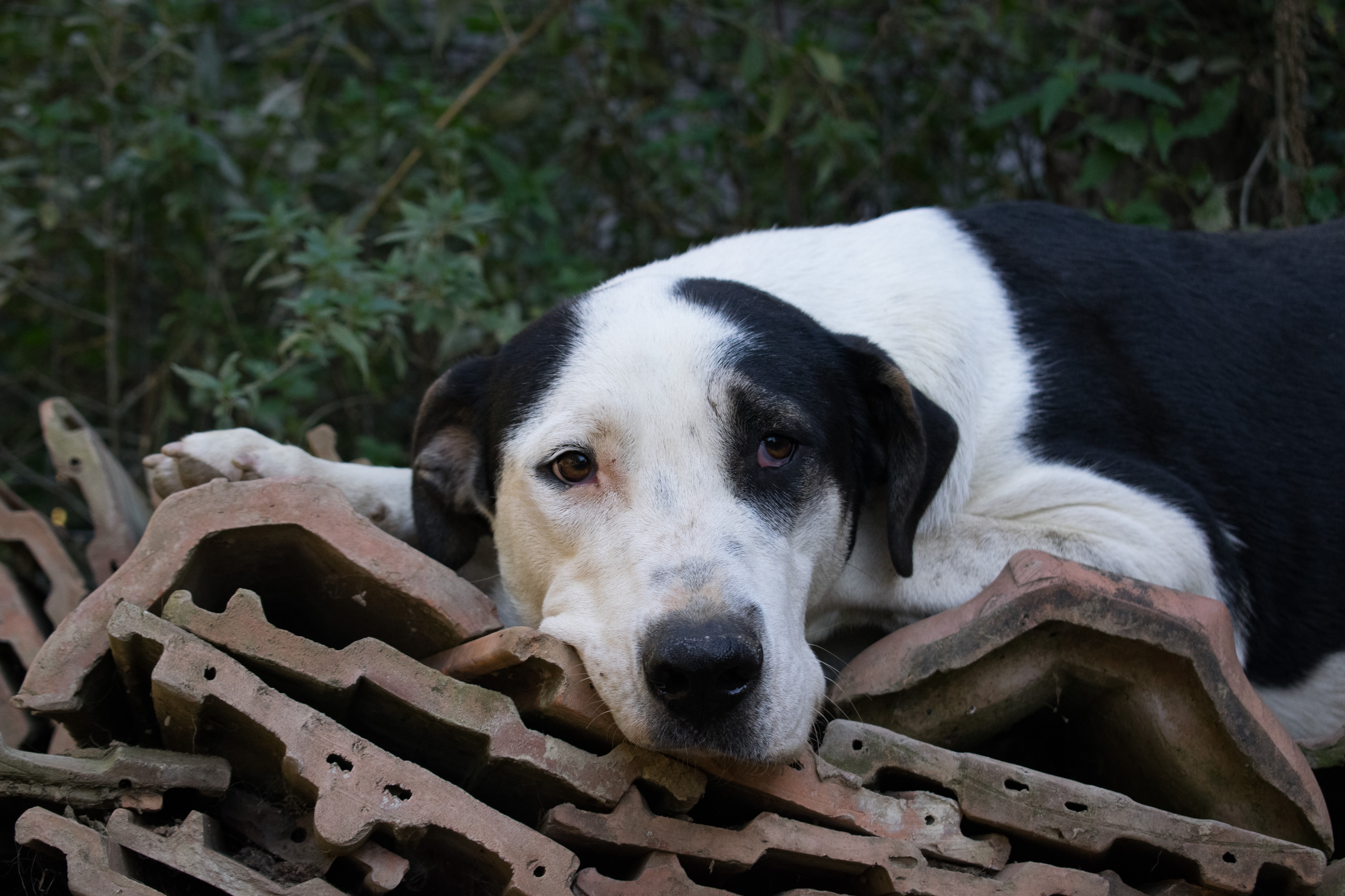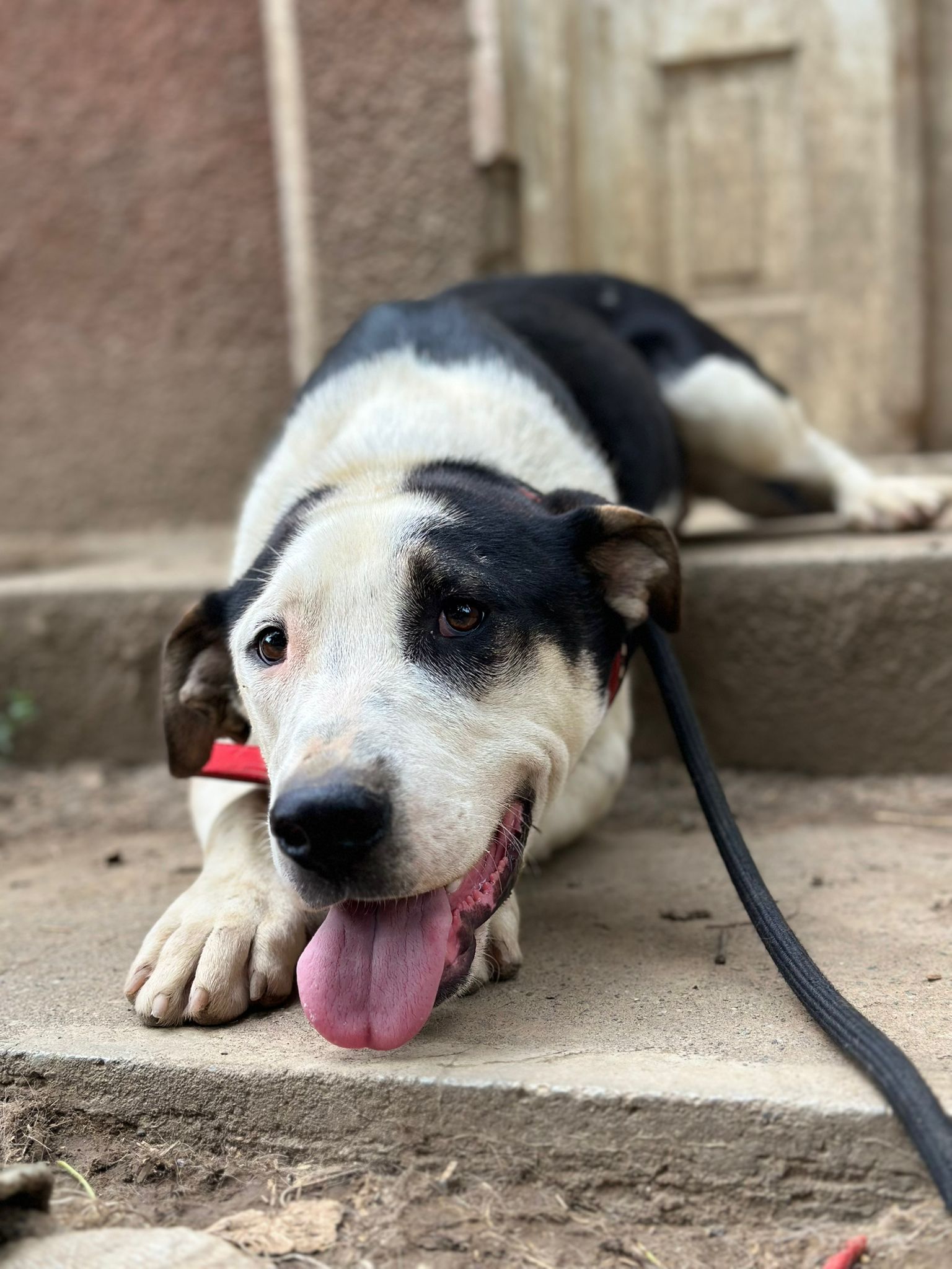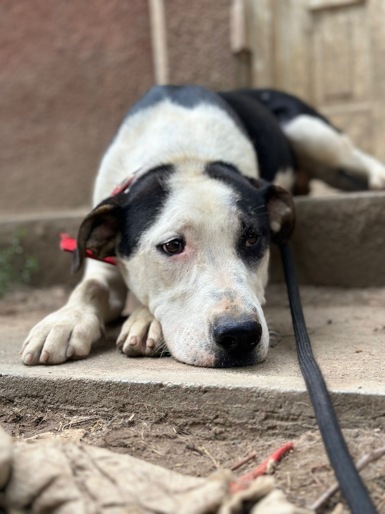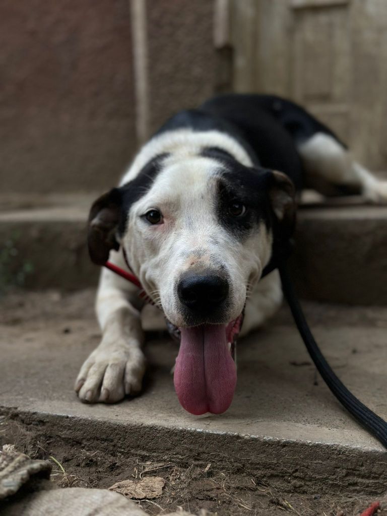 Il a été retrouvé au bord de la route avec son frère Marmelade, tous deux très maigres et mordus par d’autres chiens.