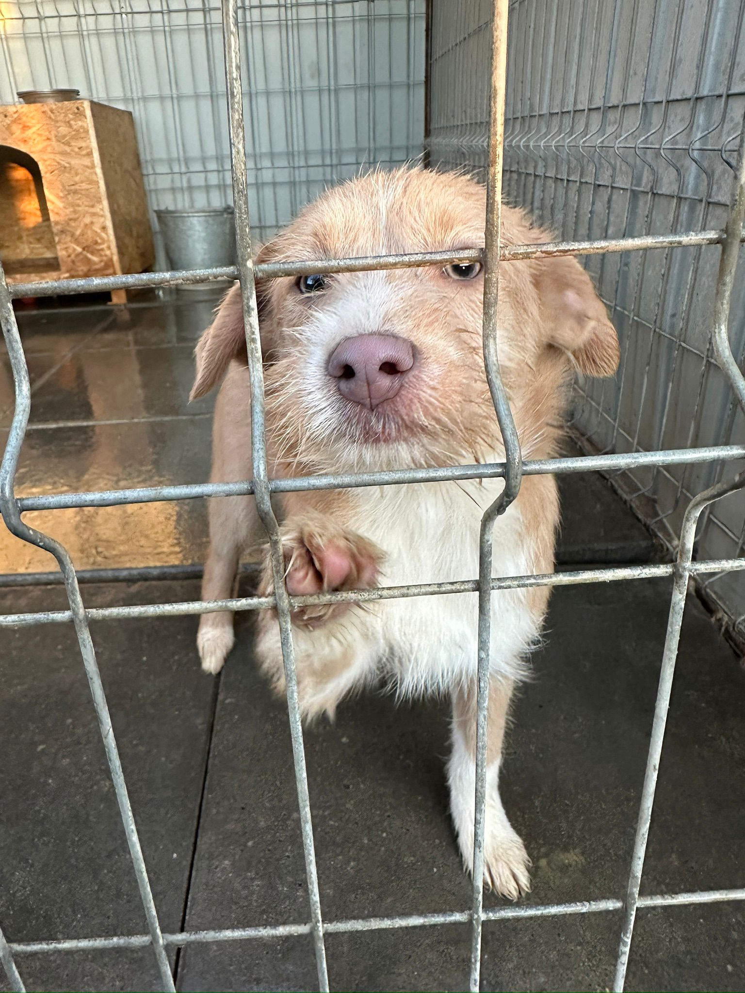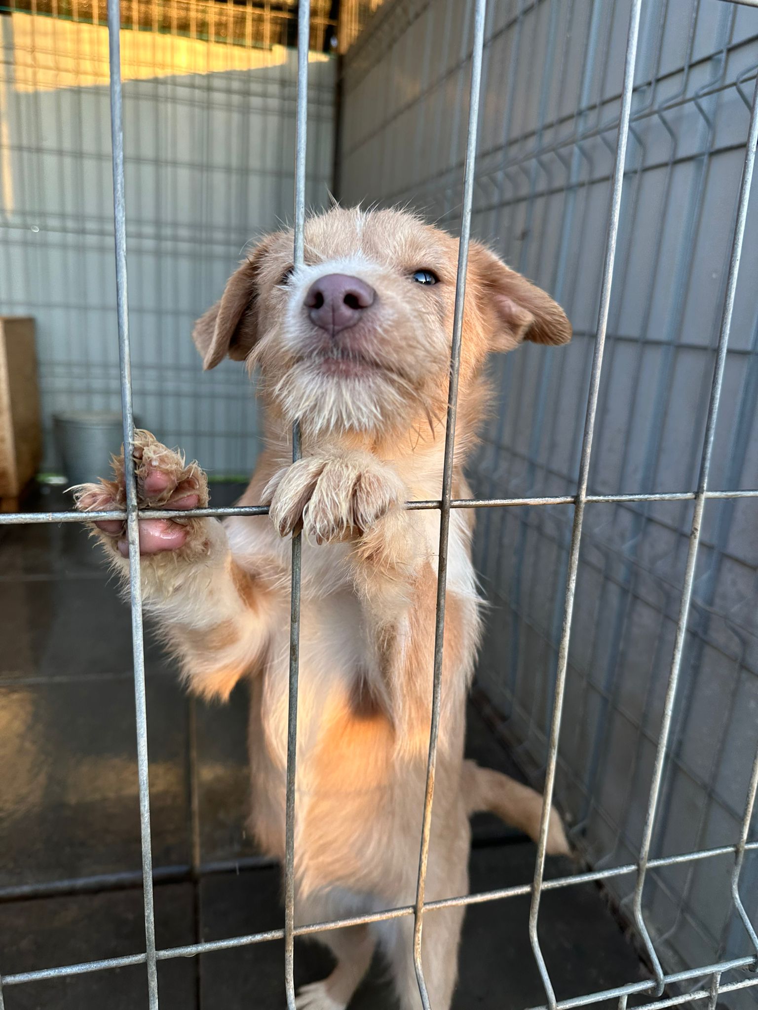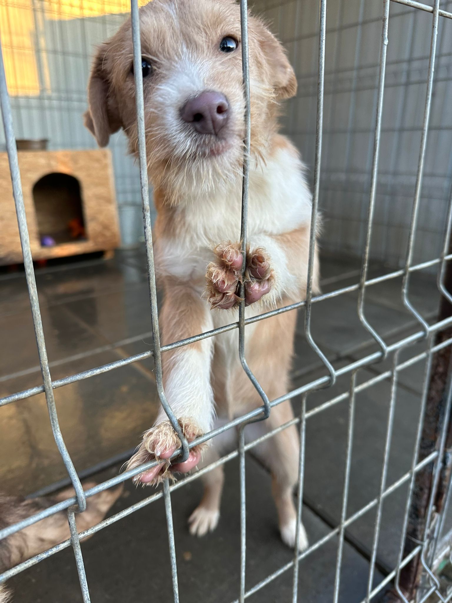 La petite chienne a été trouvée dans la cour d’une maison abandonnée en compagnie de ses frères et sœurs. La mère de la chienne, recherchant refuge à l’abri des gens, a donné naissance à une portée de six petits. Maintenant, c’est une chiot curieuse qui explore le monde avec enthousiasme. Elle a eu la chance d’être découverte par une gentille femme dans cette cour abandonnée.