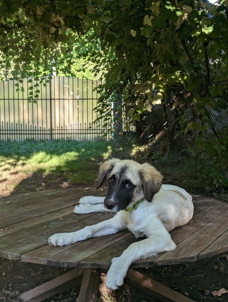 Ioss et ses quatre frères et sœurs ont été découverts abandonnés sur les rails, enfermés dans un sac. Ils n’avaient que quelques semaines, mais heureusement, une chienne Labrador les a pris sous son aile et les a allaités jusqu’à ce qu’ils soient assez grands pour être placés en famille d’accueil. L’un des chiots a été adopté par la personne qui les a trouvés, mais Ioss et deux de ses frères et sœurs cherchent encore leur foyer définitif.