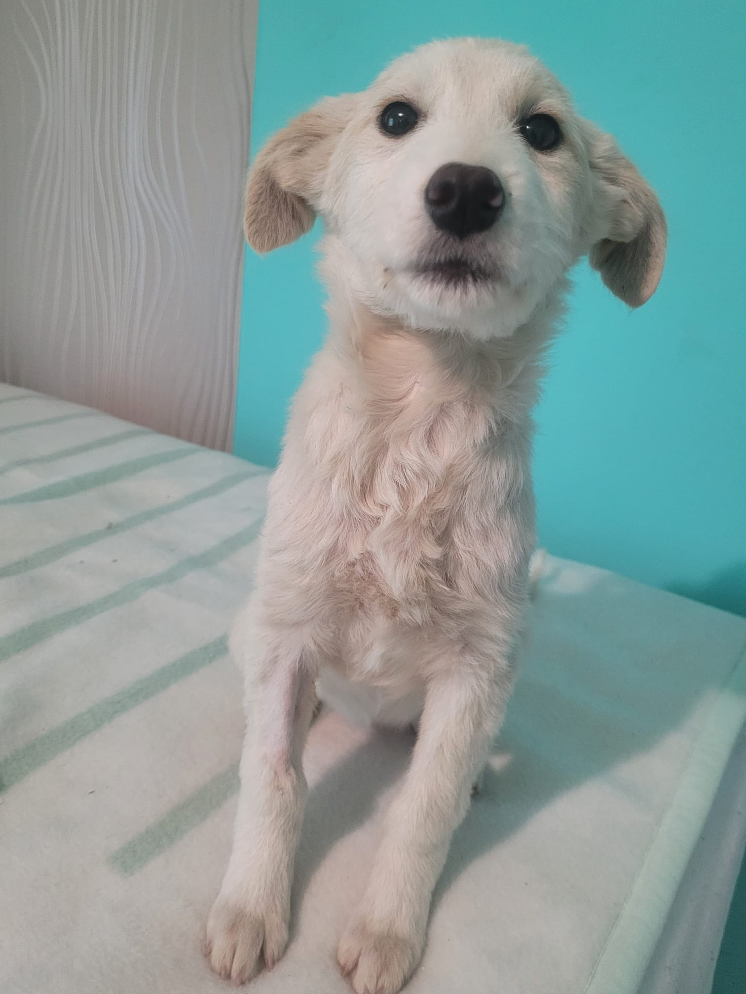 Lassie a été retrouvée abandonnée avec ses frères et sœurs dans un fossé. Malheureusement, deux d’entre eux n’ont pas survécu. Un gitan a recueilli Lassie et son frère Laddie, mais il ne s’occupait pas bien d’eux. Heureusement, notre partenaire les a pris en charge, leur offrant une chance de vivre une vie meilleure. Peu de temps après son sauvetage, Lassie a contracté la parvovirose. Par chance, le virus a été détecté à temps, et elle a été immédiatement emmenée chez le vétérinaire pour des soins urgents. Grâce à sa force et à sa détermination, elle a complètement récupéré, c’est une véritable battante !