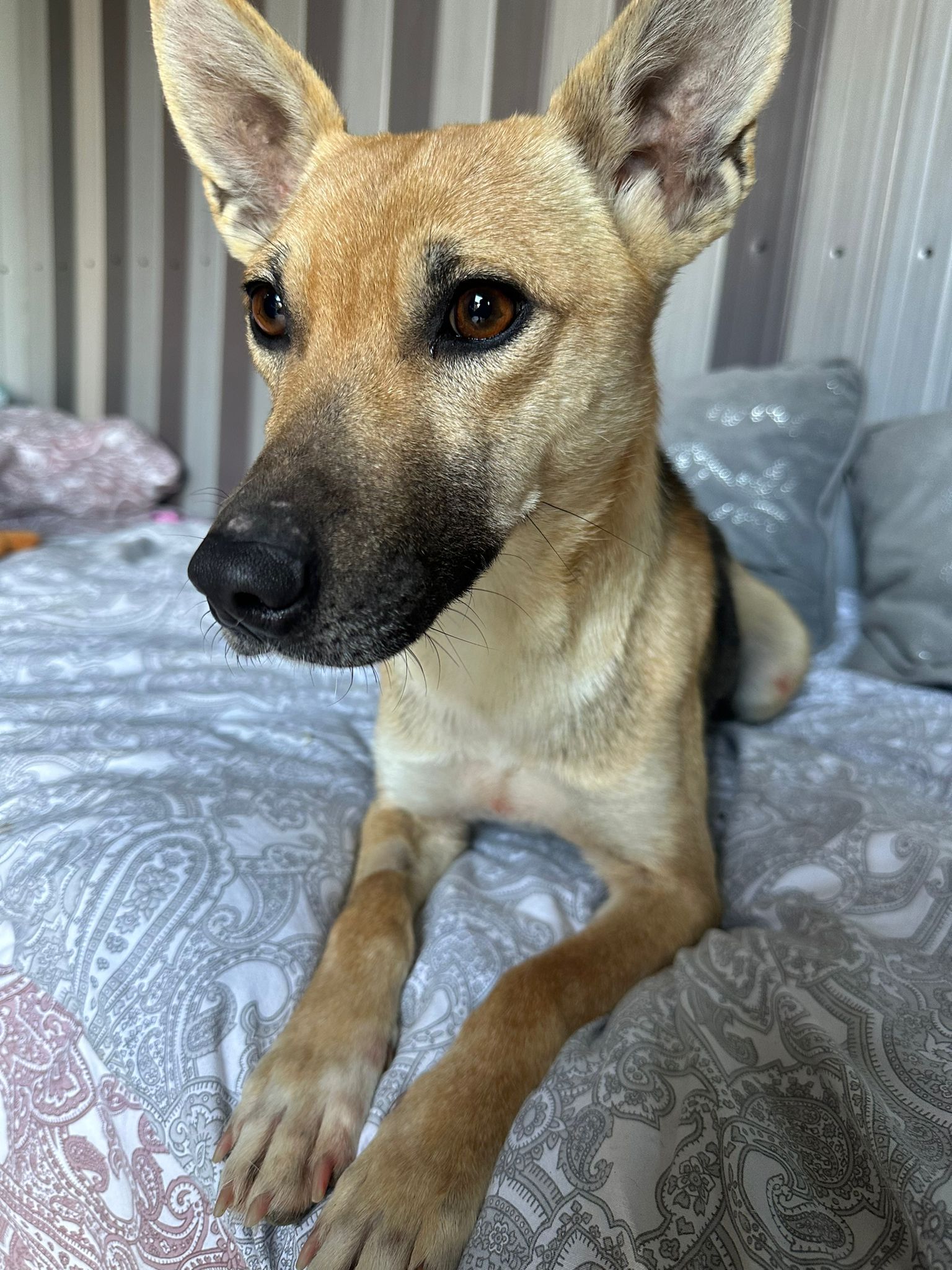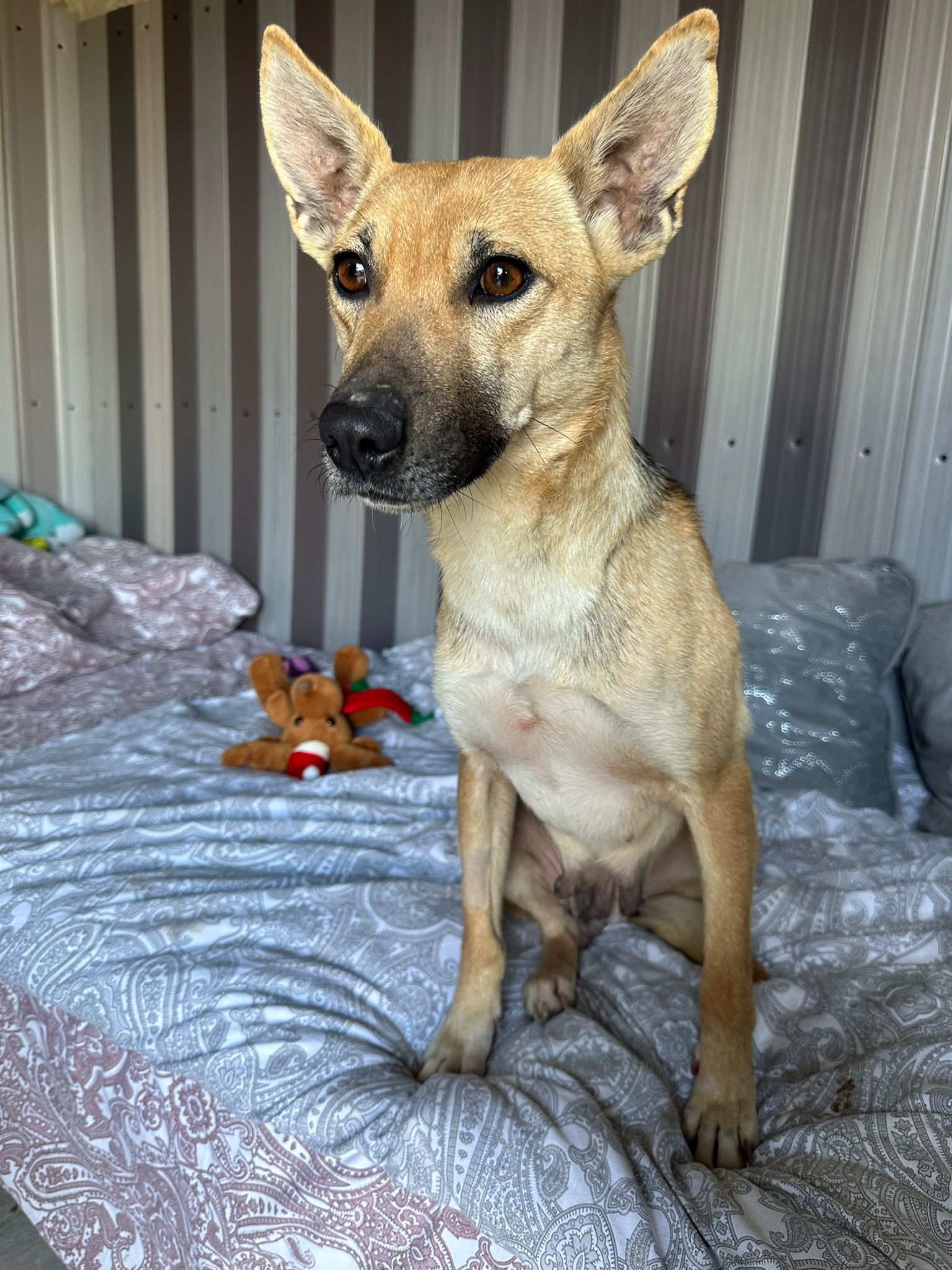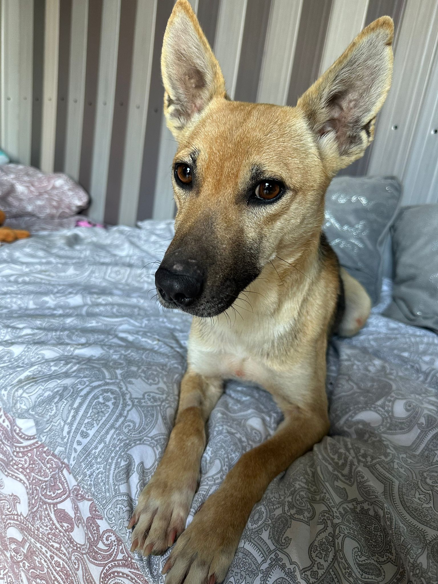 Nicole vivait dans la rue et a donné naissance à 5 petits chiots. Une dame s’est gentiment occupée d’eux et a construit une niche sur le terrain où elle avait accouché. Les chiots ont été adoptés localement grâce à cette dame, qui a aussi demandé de l’aide pour stériliser leur maman. Maintenant, Nicole est prête à trouver une famille pour toujours, après la vie difficile qu’elle a eue.