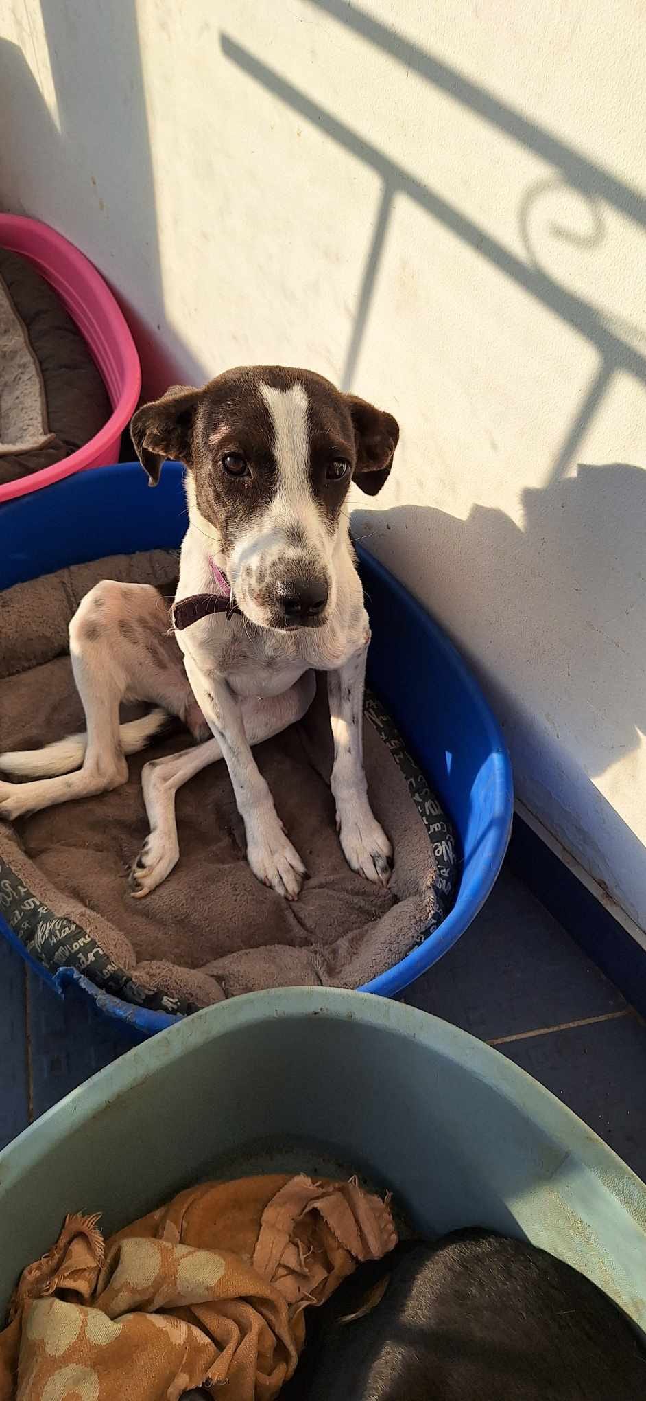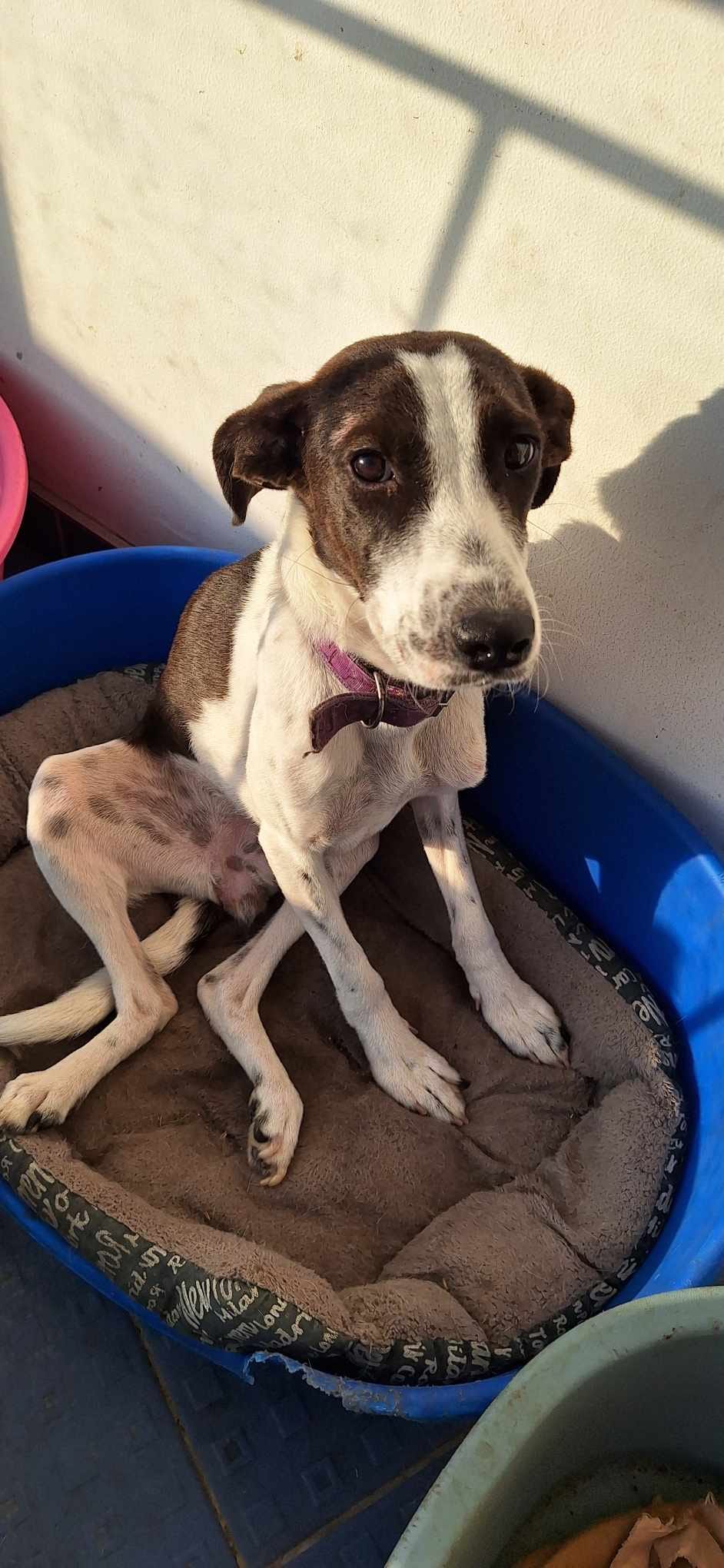La vie n’a pas toujours été douce pour Mégan. Trouvée errante dans les rues, probablement heurtée par une voiture, elle avait trois graves fractures, dont une ouverte et infectée. Grâce à un bon samaritain, Mégan a été secourue et soignée. Elle a enduré deux interventions chirurgicales et une longue convalescence. Malgré la douleur, les épreuves et un corps affaibli, elle n’a jamais cessé de remuer la queue.