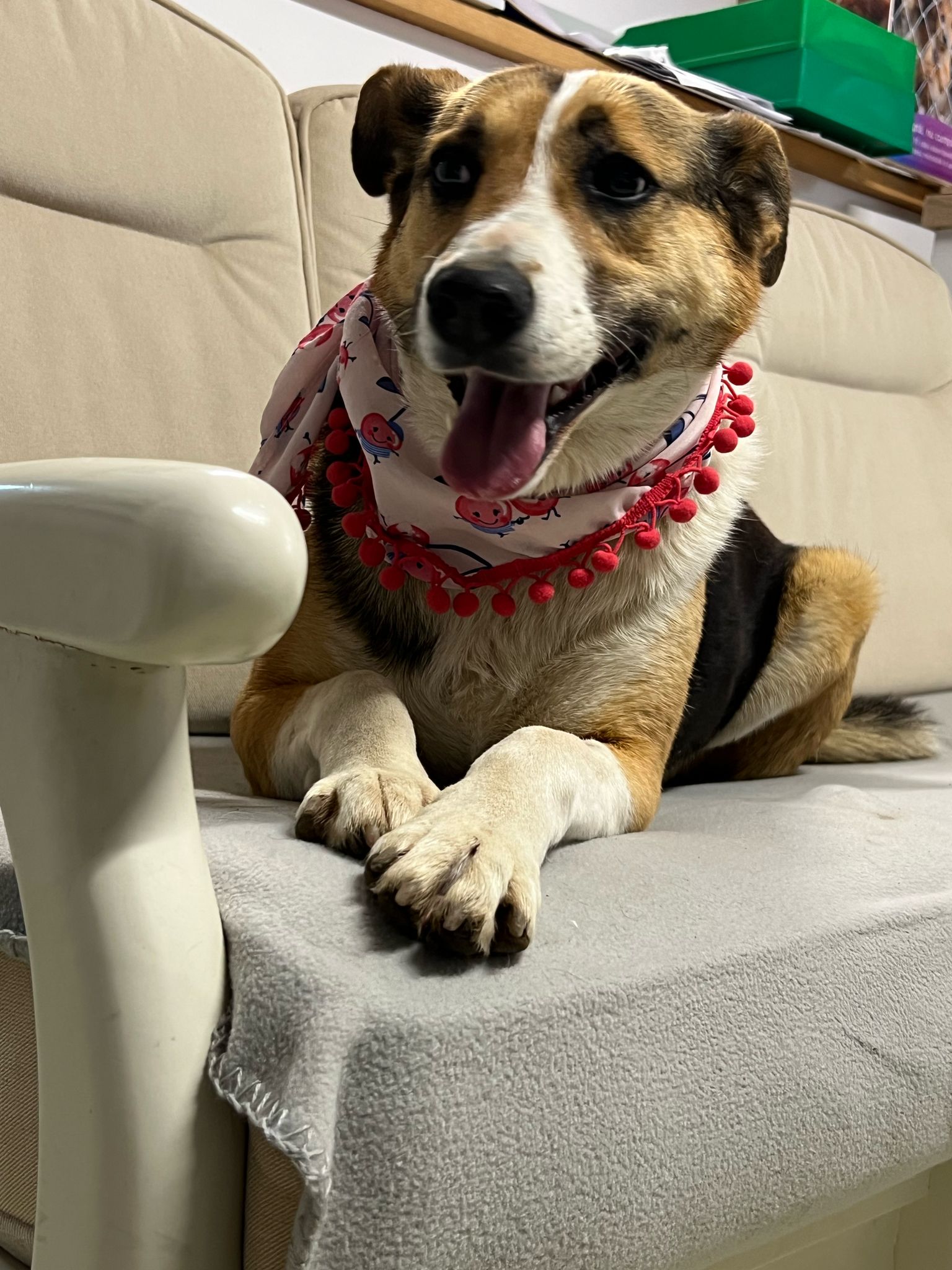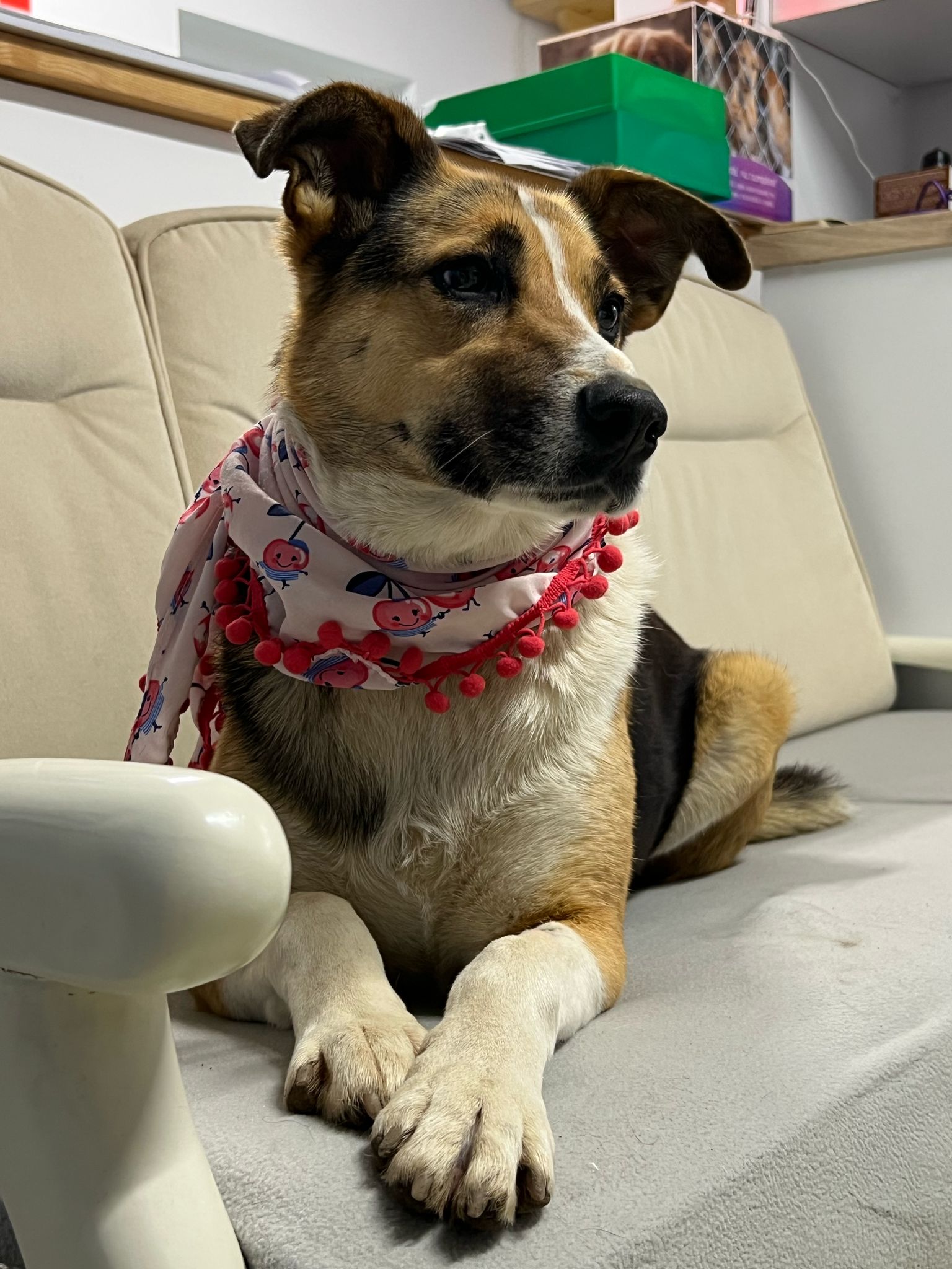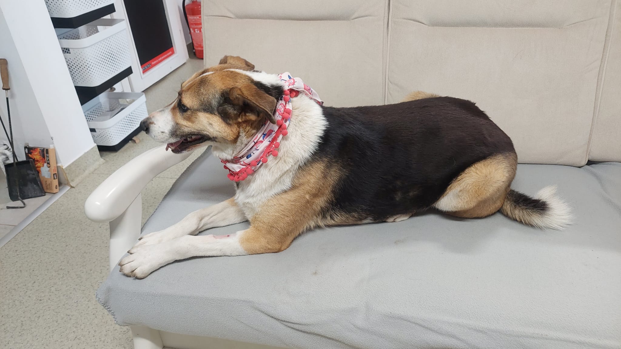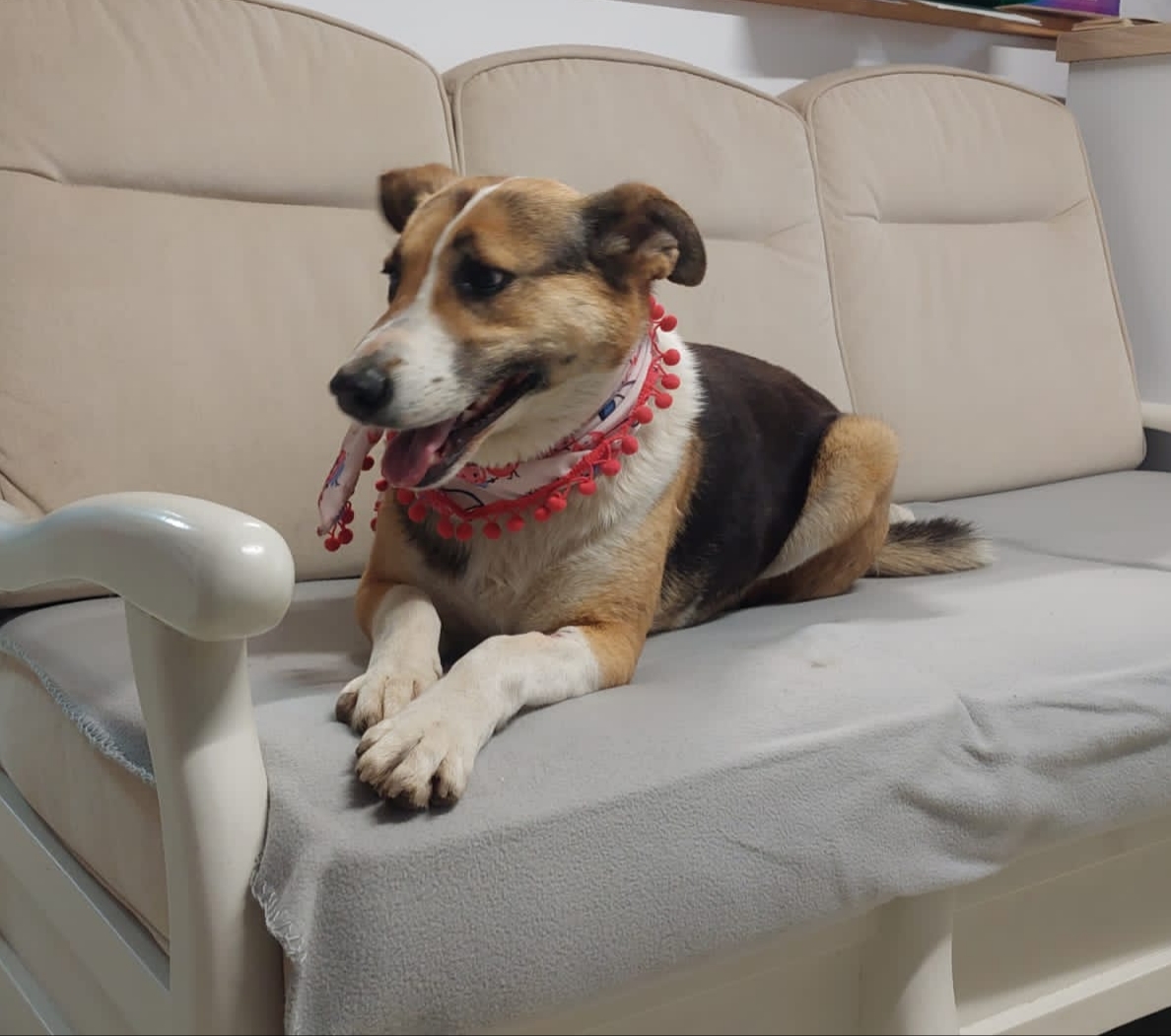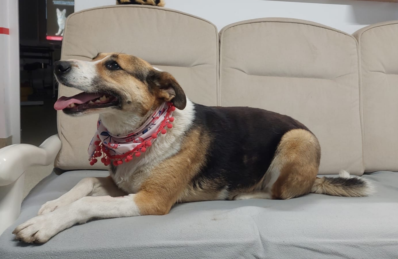 Elle a ensuite été placée en famille d’accueil avec ses chiots, qui ont tous été adoptés après avoir grandi. Cependant, sa famille d’accueil actuelle, qui vit dans une cour partagée avec plusieurs maisons, se trouve dans l’incapacité de la garder, les nouveaux propriétaires ayant donné un ultimatum pour qu’elle parte.