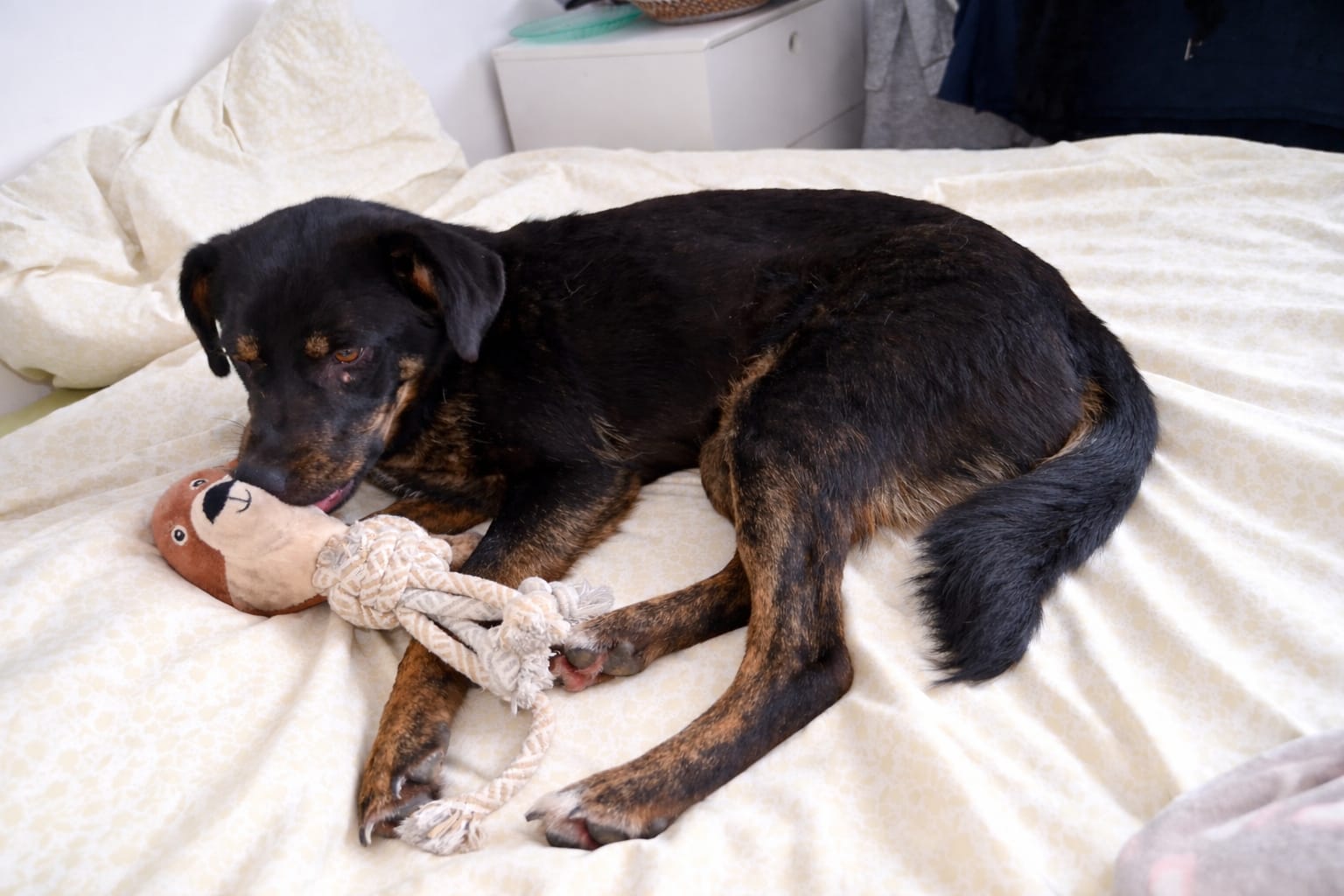 Kenya est une petite chienne curieuse et pétillante, toujours prête à découvrir le monde qui l’entoure. Elle aime observer, jouer, courir, et elle déborde d’énergie ! Elle a un tempérament bien affirmé, ce qui la rend amusante et pleine de caractère, mais cela ne l’empêche pas d’être très joyeuse et sociable avec les autres chiens.