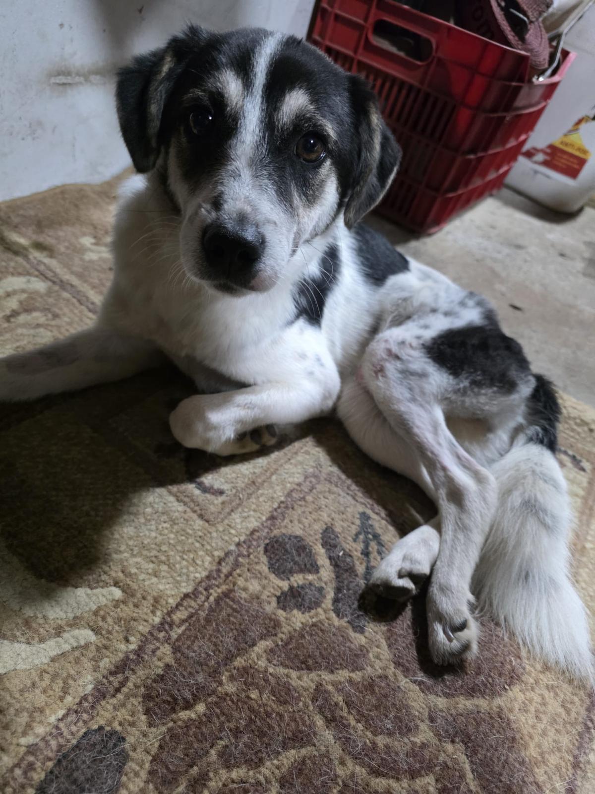 Suite à une ancienne fracture mal soignée, Karla a dû être amputée. Elle s’est parfaitement adaptée à son handicap et se déplace très bien. Cela ne l’empêche pas de vivre une vie normale et de profiter de chaque journée. Ses frais d’adoption sont réduits en raison de son handicap.