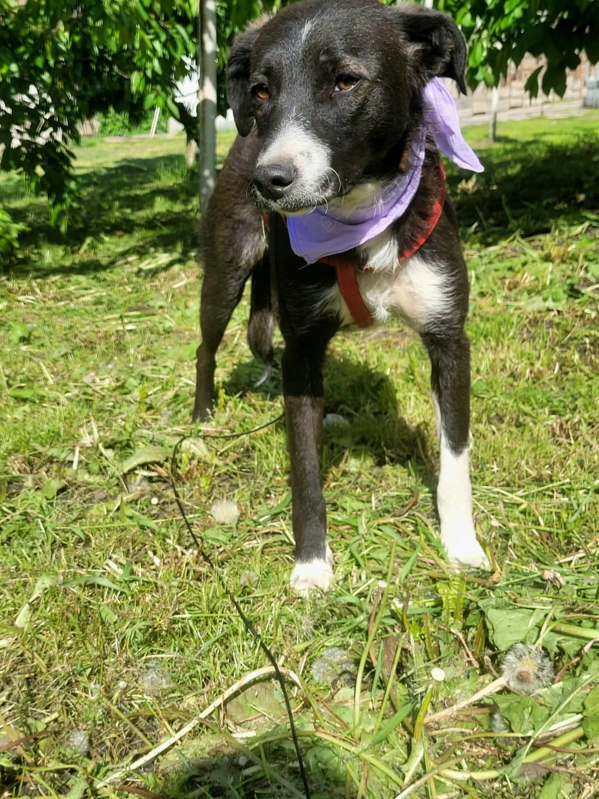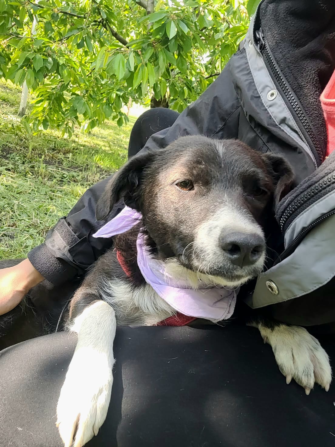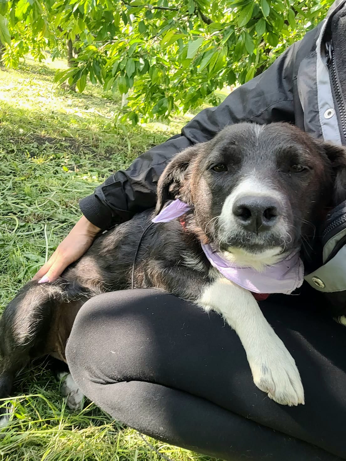 Eria a été abandonnée près d’un aéroport alors qu’elle était gestante, livrée à elle-même pour survivre. Elle a donné naissance à sept chiots, dont quatre qui ont survécu. Malgré le traumatisme et l’abandon qu’elle a vécus, Eria est restée sereine et pleine de confiance.