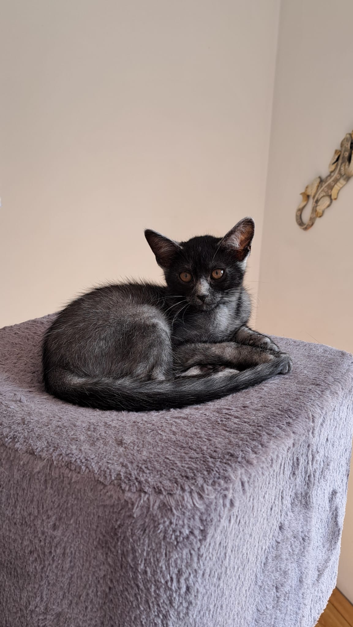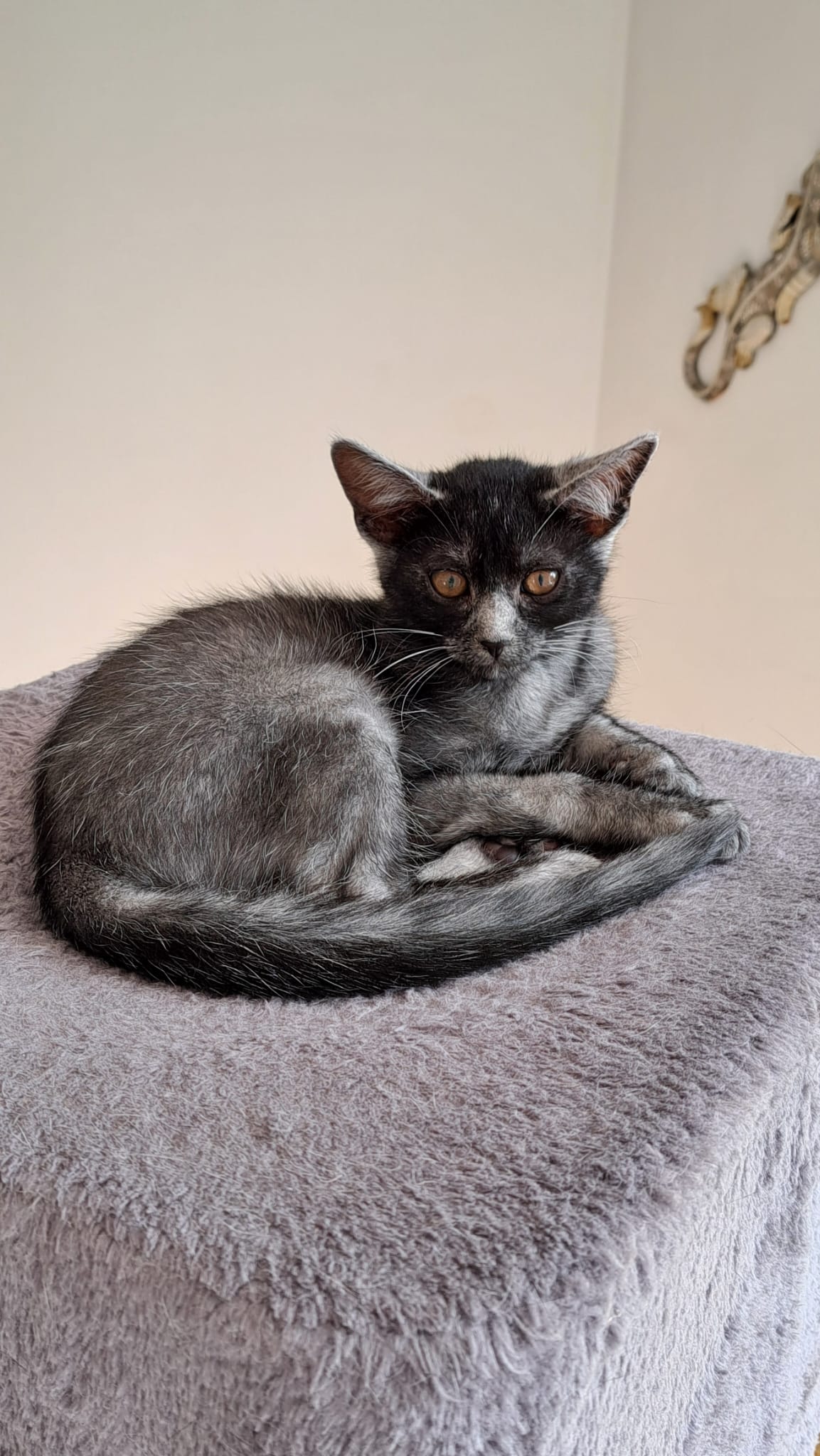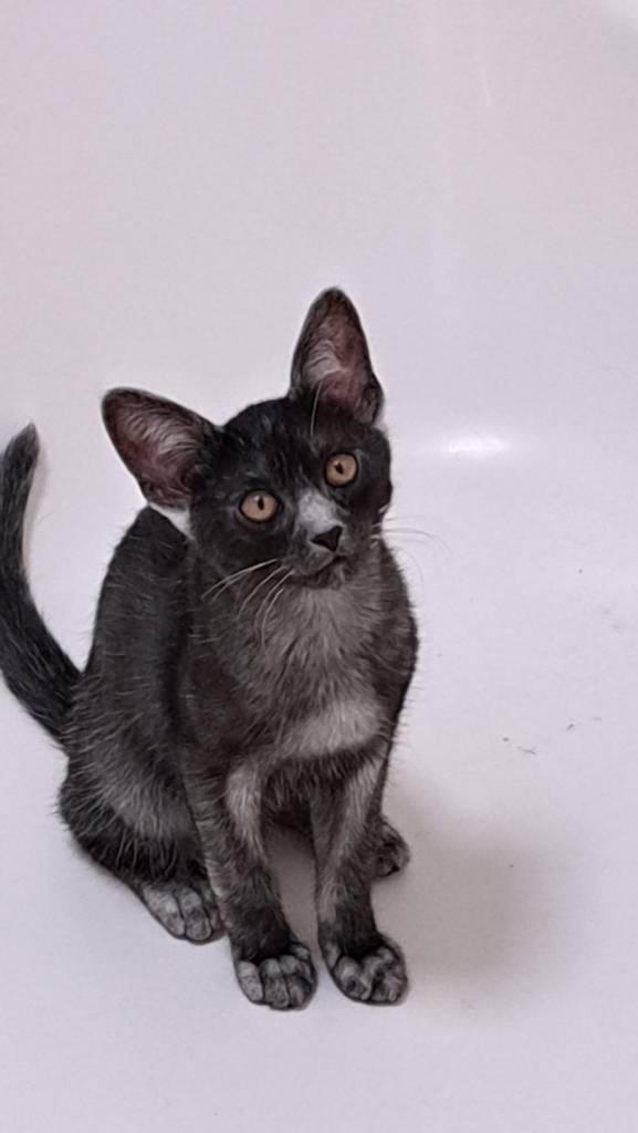 Sa maman, une chatte errante, a été recueillie par une dame alors qu’elle attendait ses petits. Ashh est donc né en sécurité, aimé dès ses premiers instants.