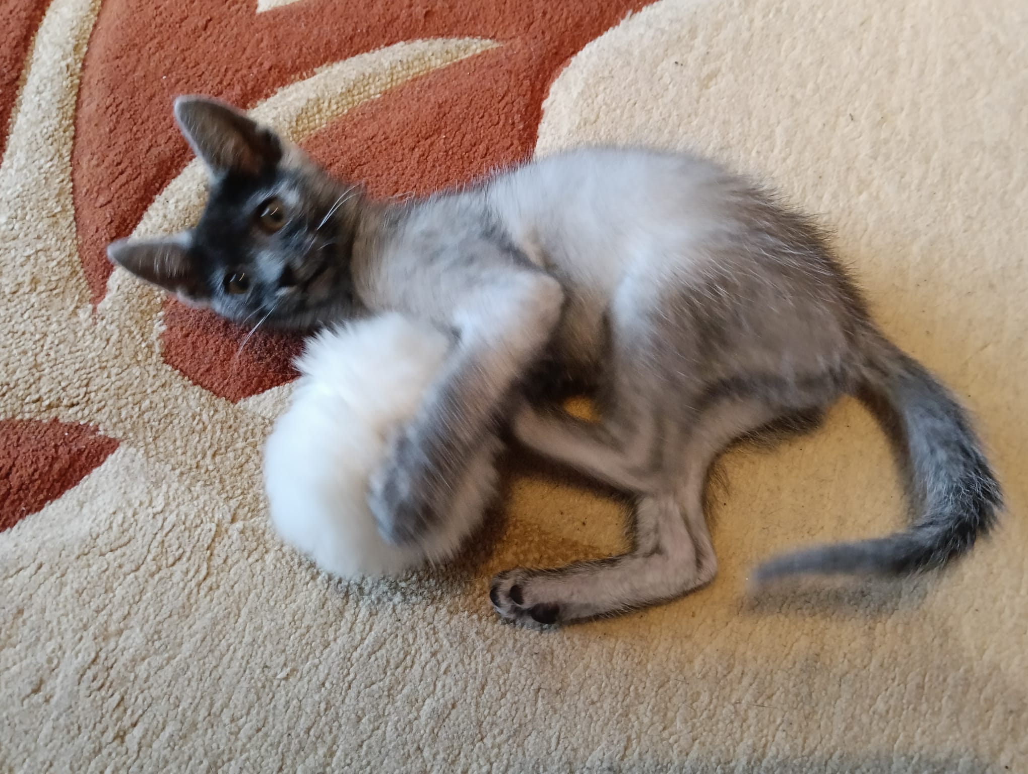 Très sociable et gourmand (surtout de pâtée !), Picasso adore aussi les câlins et la compagnie humaine. Il aime être occupé, alors une famille présente ou avec d’autres animaux serait un vrai bonheur pour lui.
