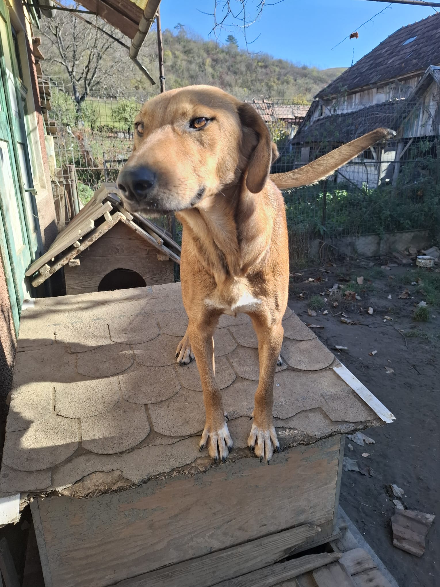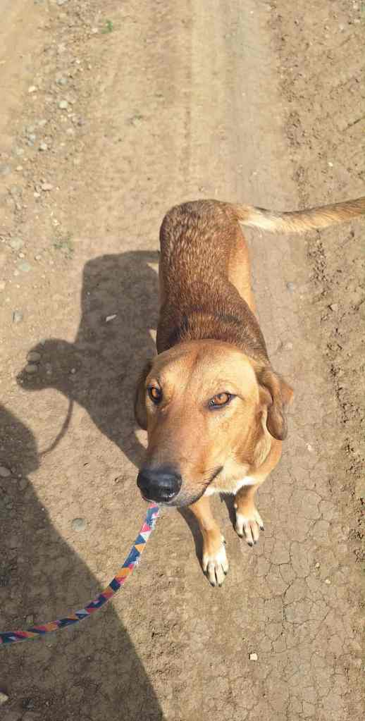 Rosé a été trouvée dans un village en Roumanie, seule et gestante. Elle errait sans repères, probablement abandonnée, mais elle gardait une attitude douce et calme malgré les circonstances. Heureusement, elle a été prise en charge par notre partenaire local à temps, et a pu être stérilisée avant de mettre bas.