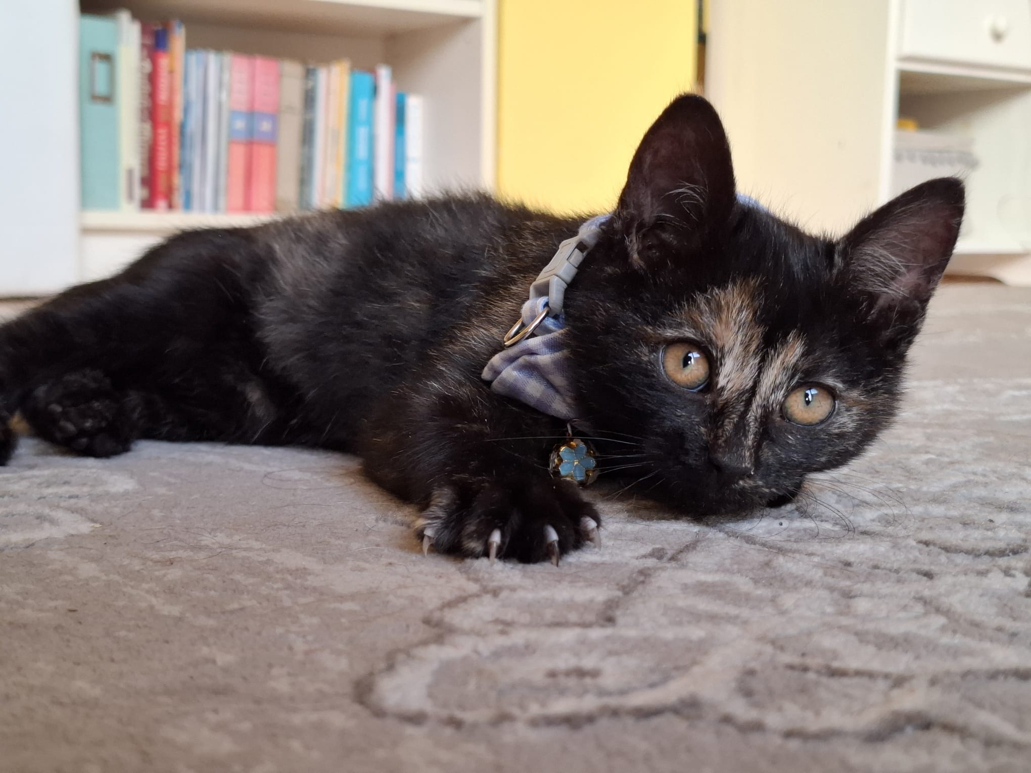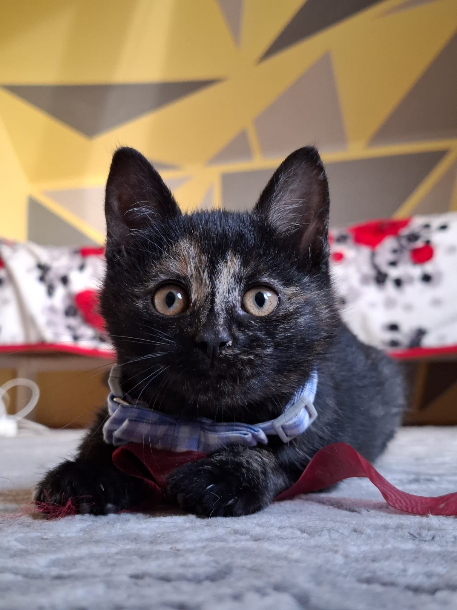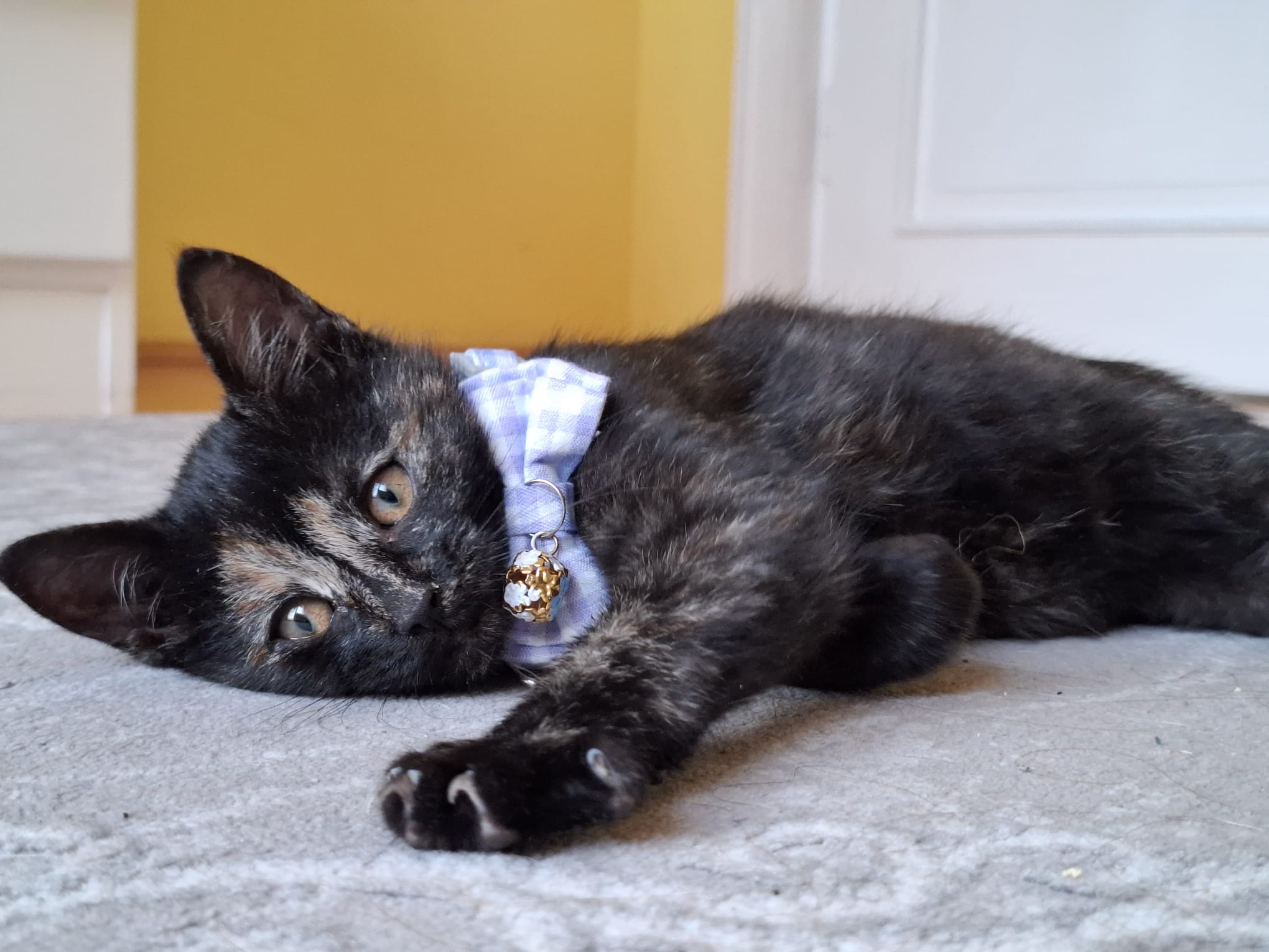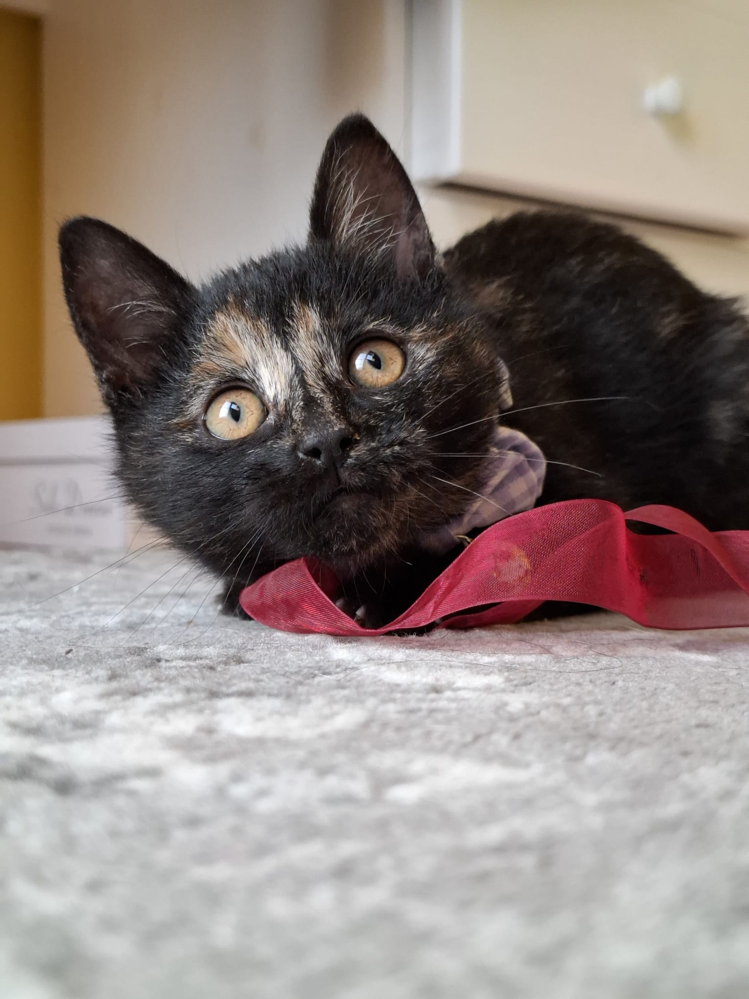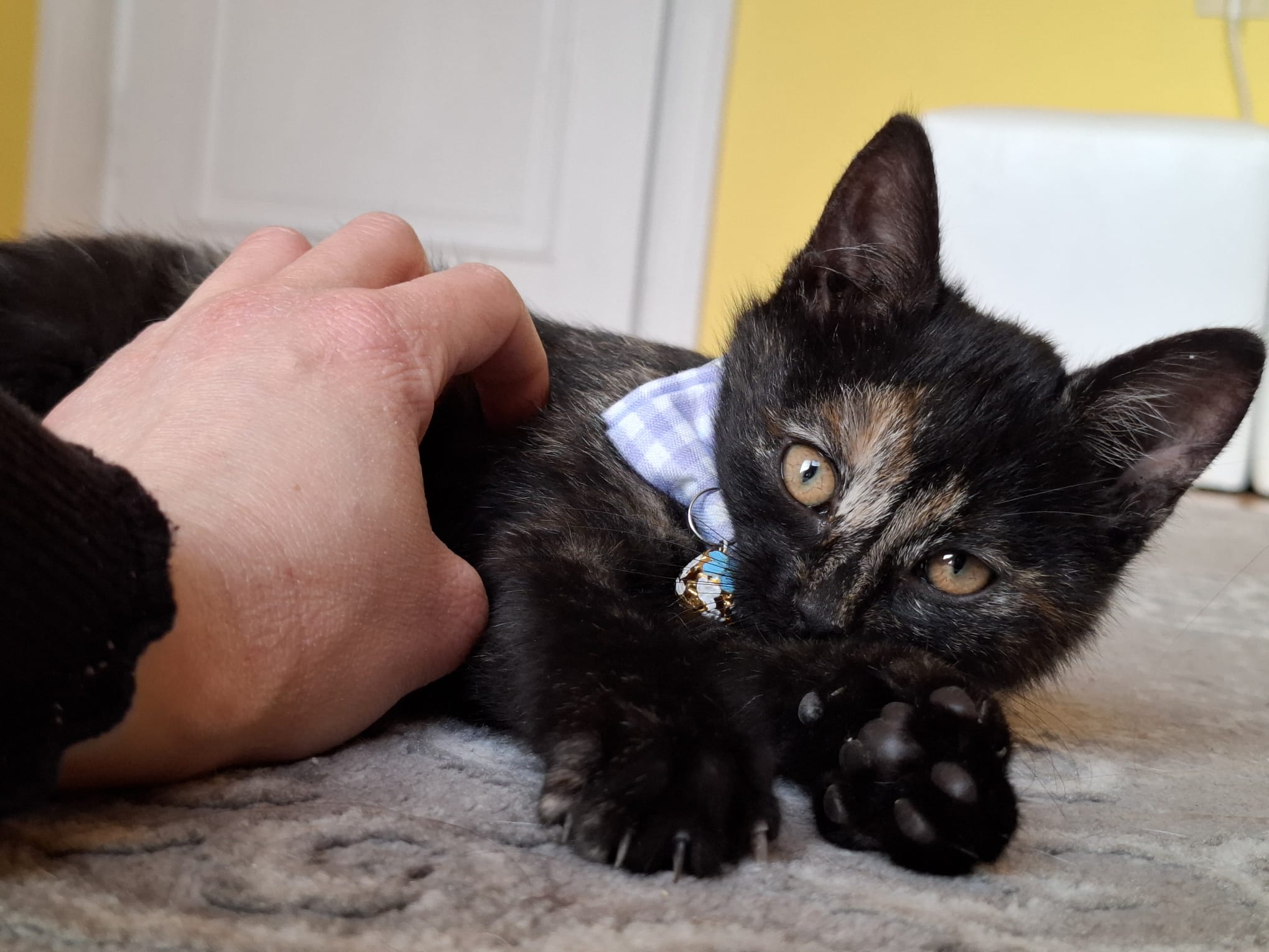 Moe est née dans un foyer où la chatte n’avait pas été stérilisée. Un bénévole roumain est intervenu rapidement : la maman a été conduite chez le vétérinaire pour être stérilisée, et les chatons ont été placés en famille d’accueil car l’environnement n’était pas sûr pour eux. Grâce à cette prise en charge, Moe et ses frères et sœurs ont grandi dans un cadre serein et ont été socialisés dès leur plus jeune âge.