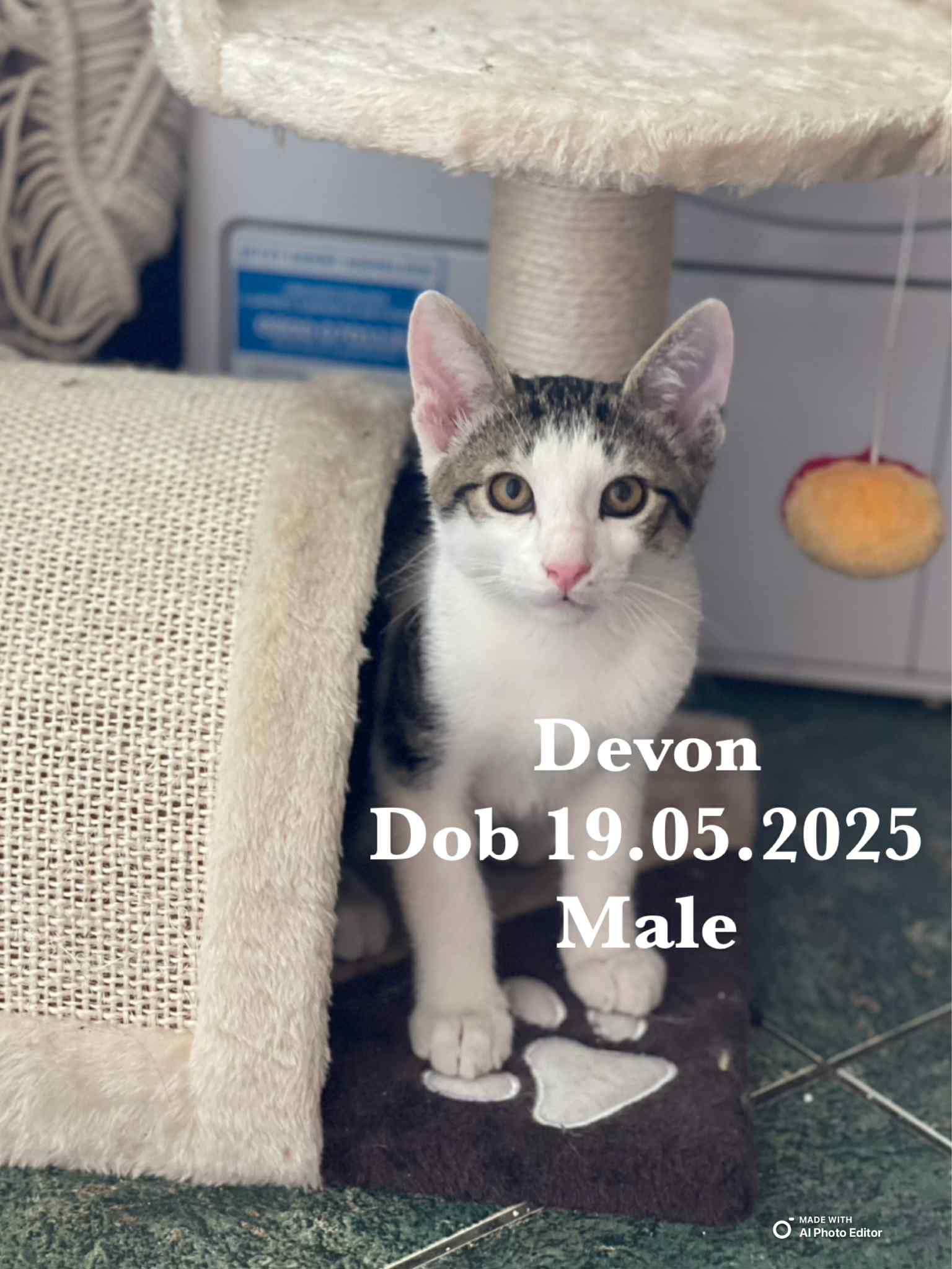 Devon est un chaton doux et très affectueux, c’est un petit gars calme, facile à vivre, qui aime être proche de ses humains. Il adore se blottir sur les genoux, ronronner tranquillement à vos côtés ou vous suivre partout.