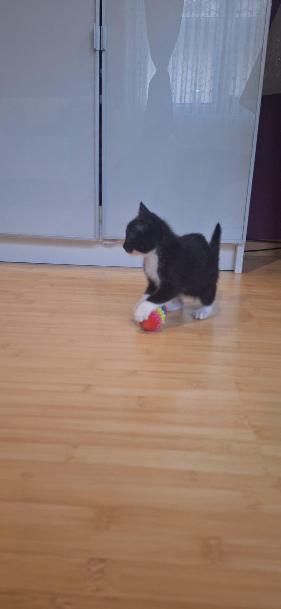 Kitkat est une chatonne très joueuse, mignonne et câline. Elle adore jouer à cache‑cache, courir après ses jouets et s’amuser avec ses sœurs… et avec les humains aussi. Elle est propre et utilise parfaitement la litière.