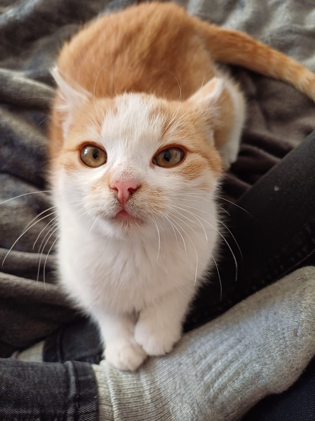 Cheddar est un chaton calme, tendre et très facile à vivre. C’est un petit bout adorable, toujours prêt pour un câlin. Contrairement aux chatons très énergiques qui courent partout, Cheddar préfère un rythme tranquille, il aime se poser, se blottir sur vos genoux ou s’endormir contre vous.