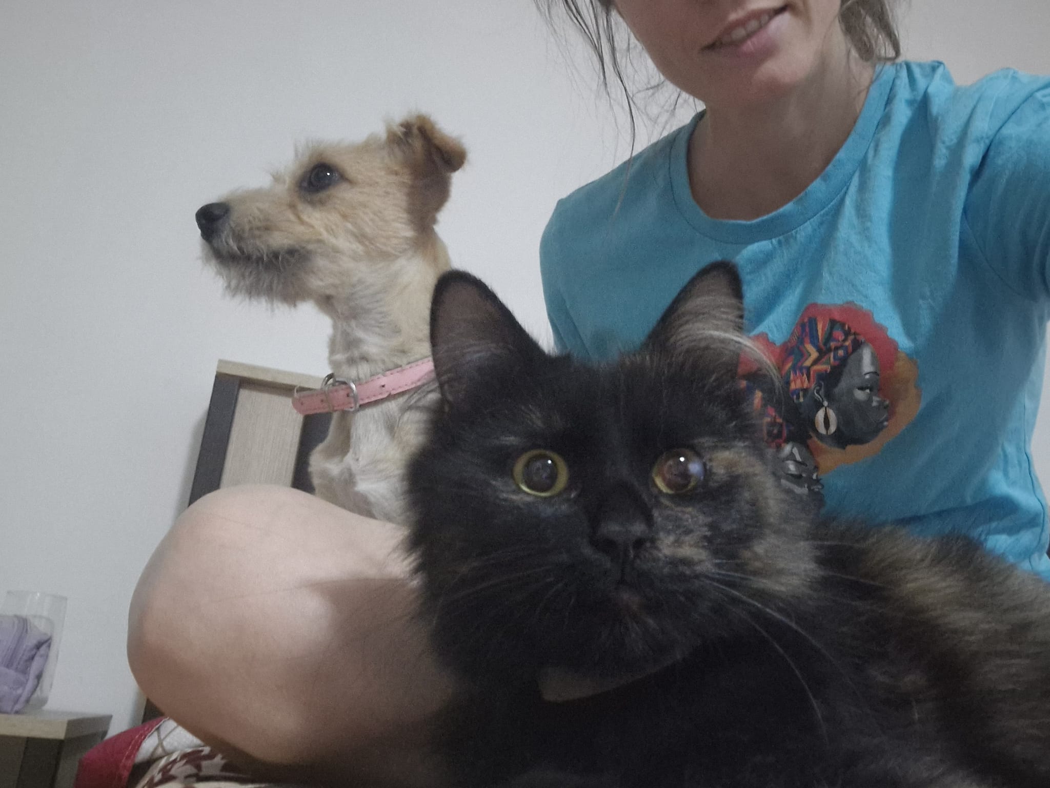 Elle s’entend très bien avec les chiens, surtout les petits, les chats et les enfants.