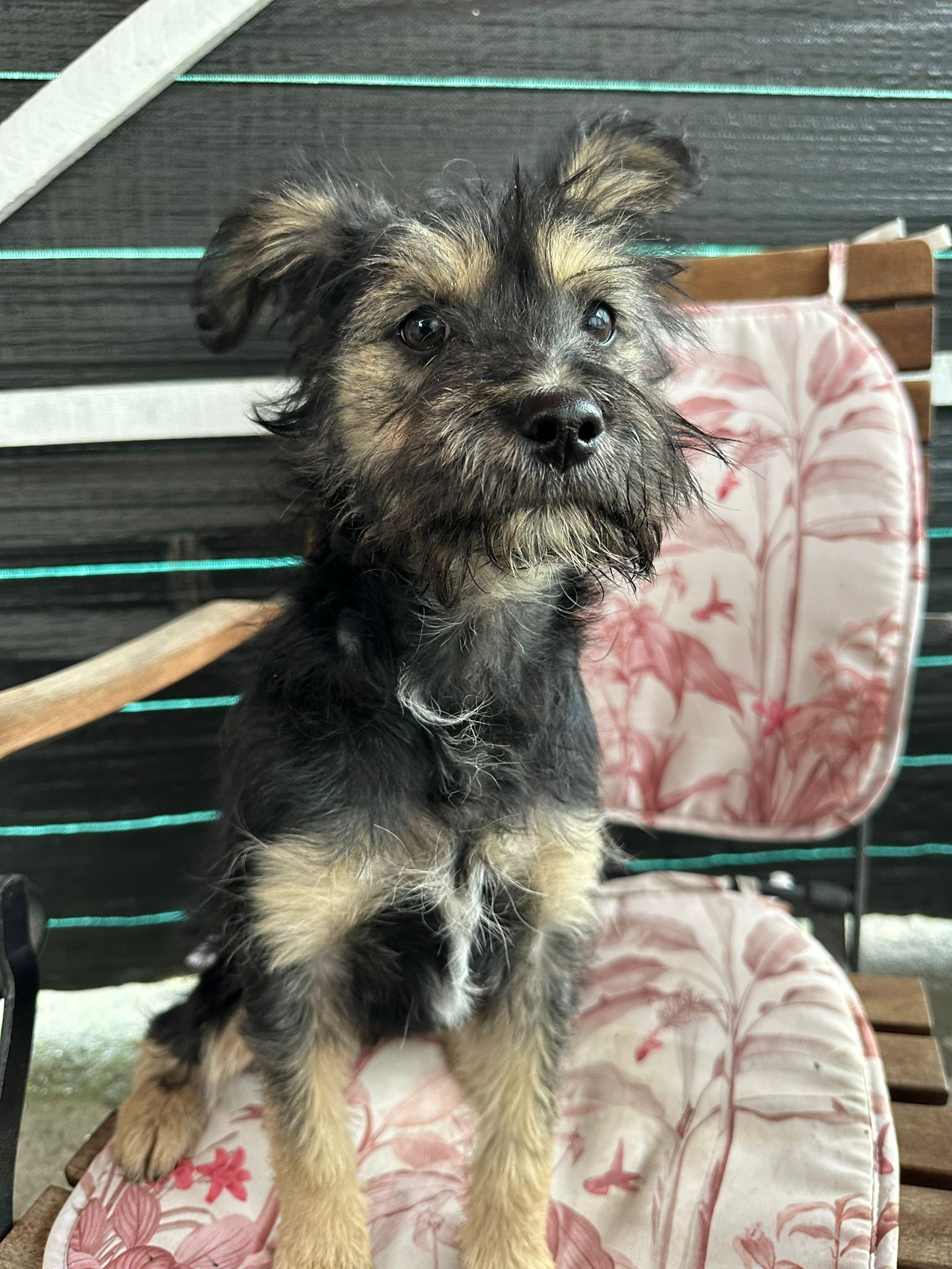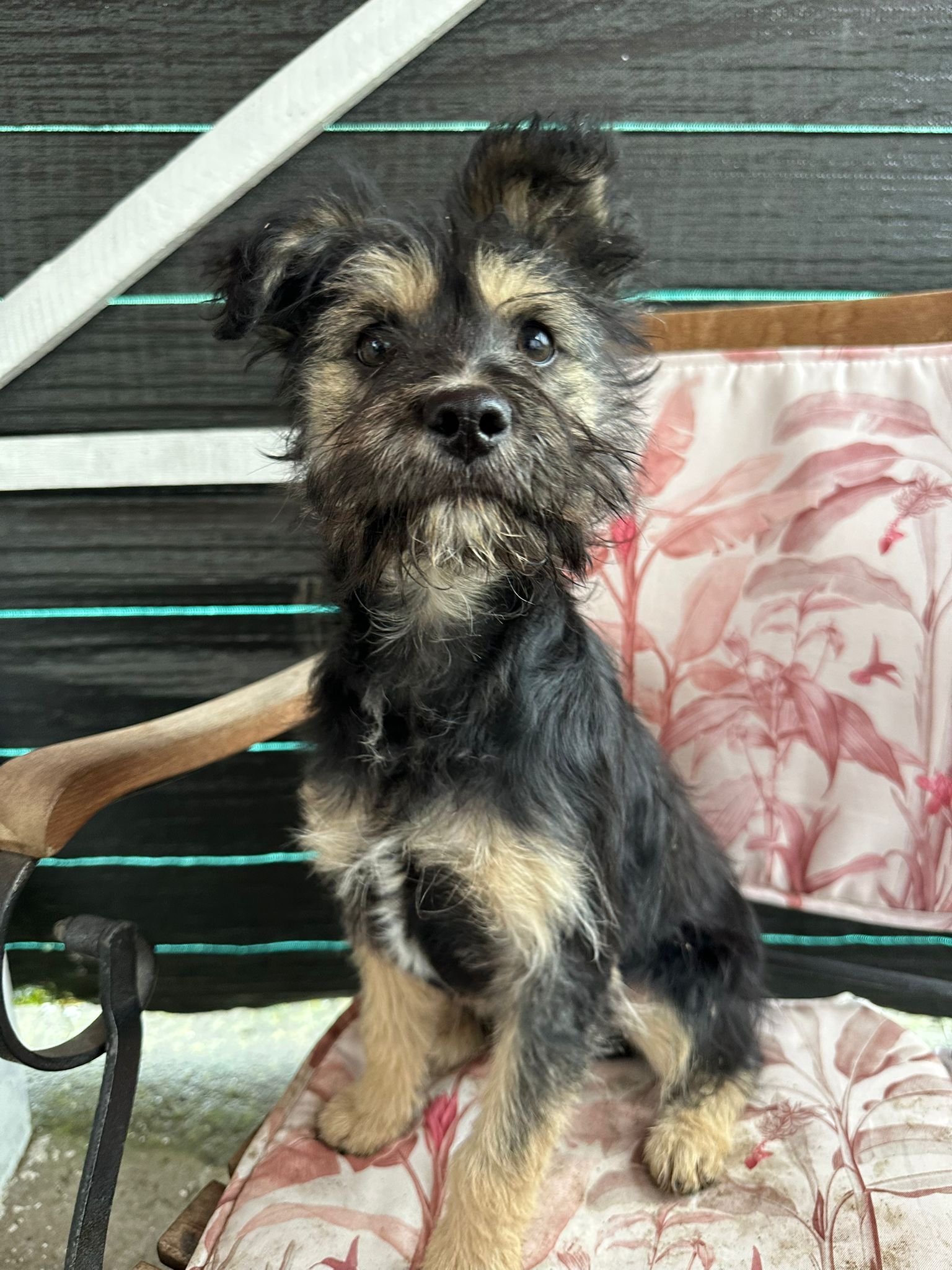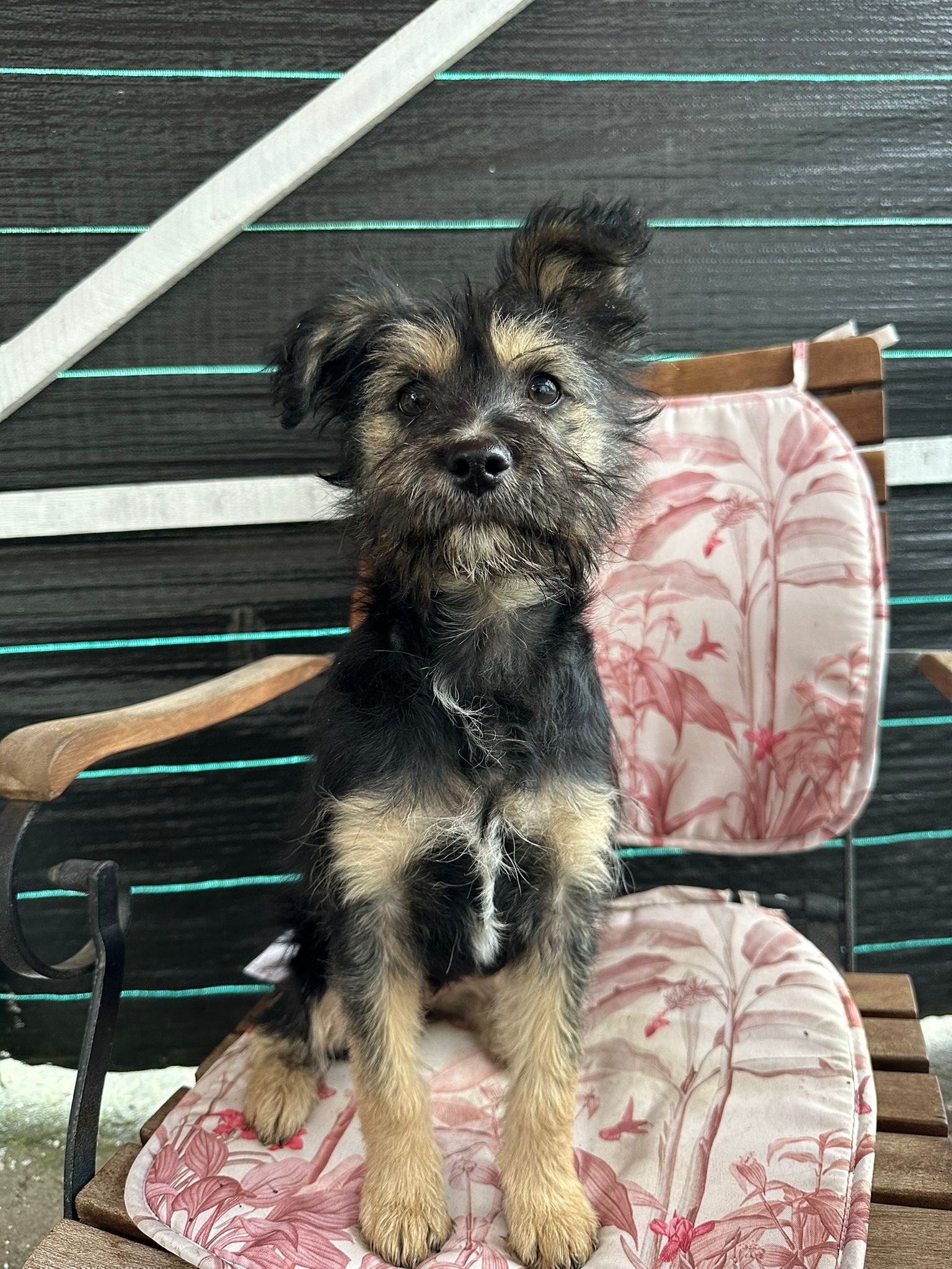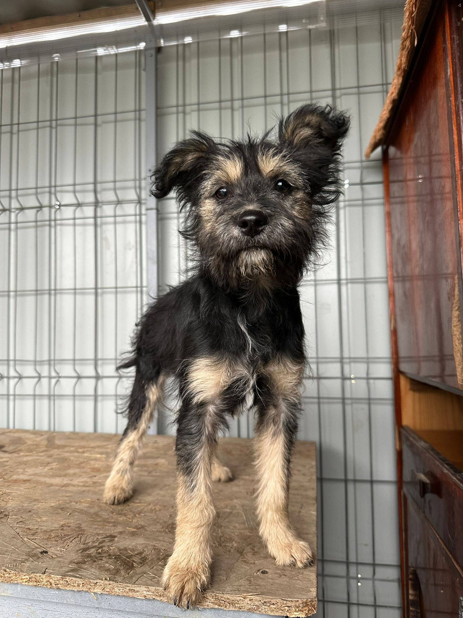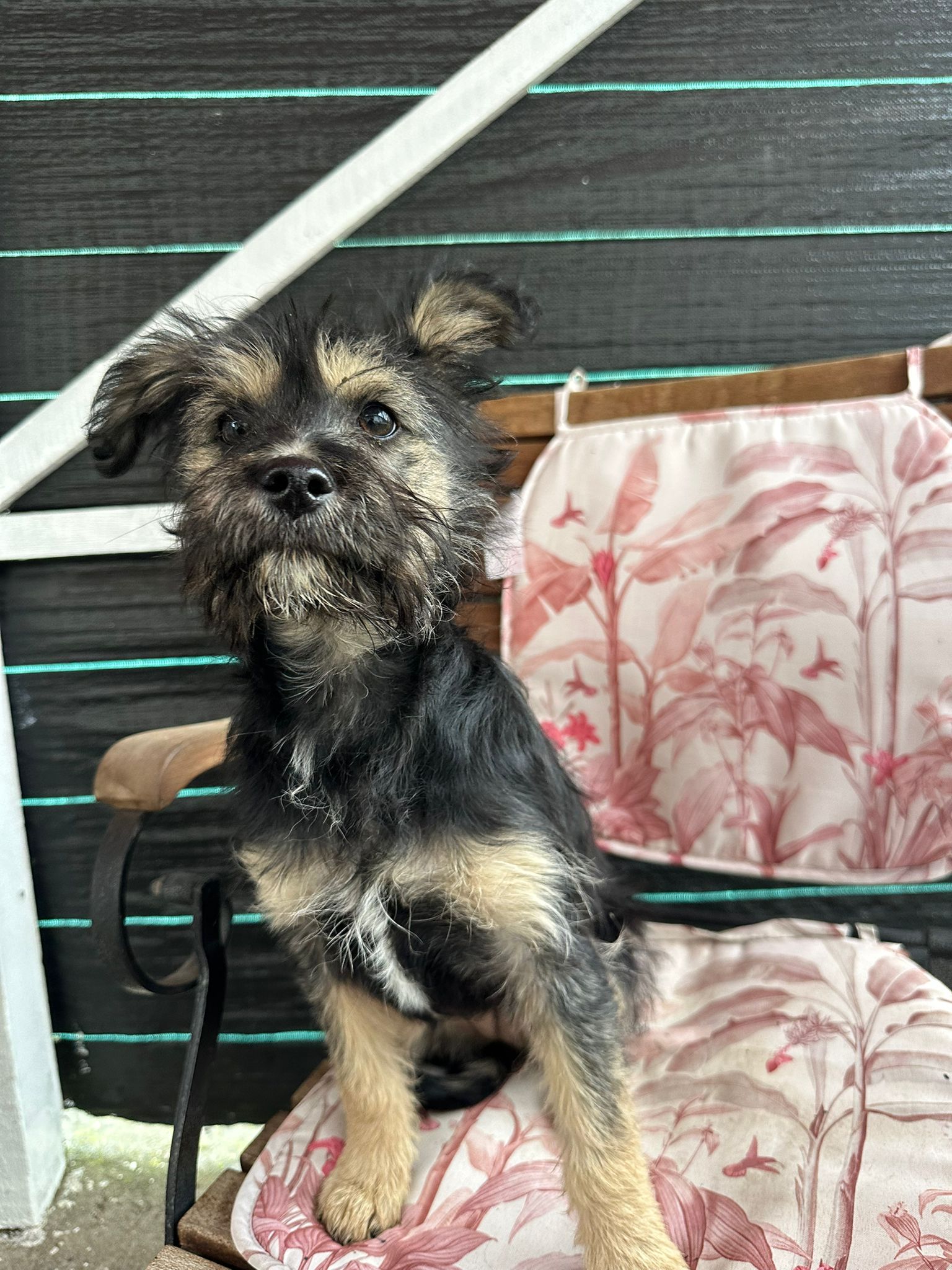 Le passé de Milly reste flou. Elle a été signalée sur un groupe local par une dame qui expliquait que Milly était apparue dans sa cour. Comme cette cour était partagée avec d’autres voisins, Milly sortait souvent et se retrouvait en danger près de la route. Après l’avoir vue plusieurs fois signalée comme errante en ville, notre partenaire a décidé de la prendre en charge pour sa sécurité.